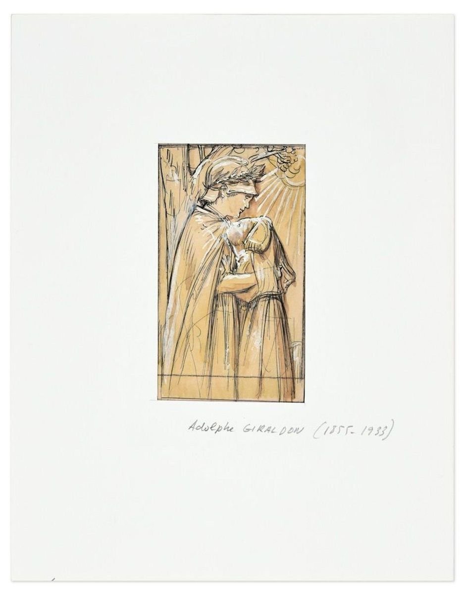 Embrace - Original China Ink Drawing by A. Giraldon - Early 20th Century Early 20th Centuryy