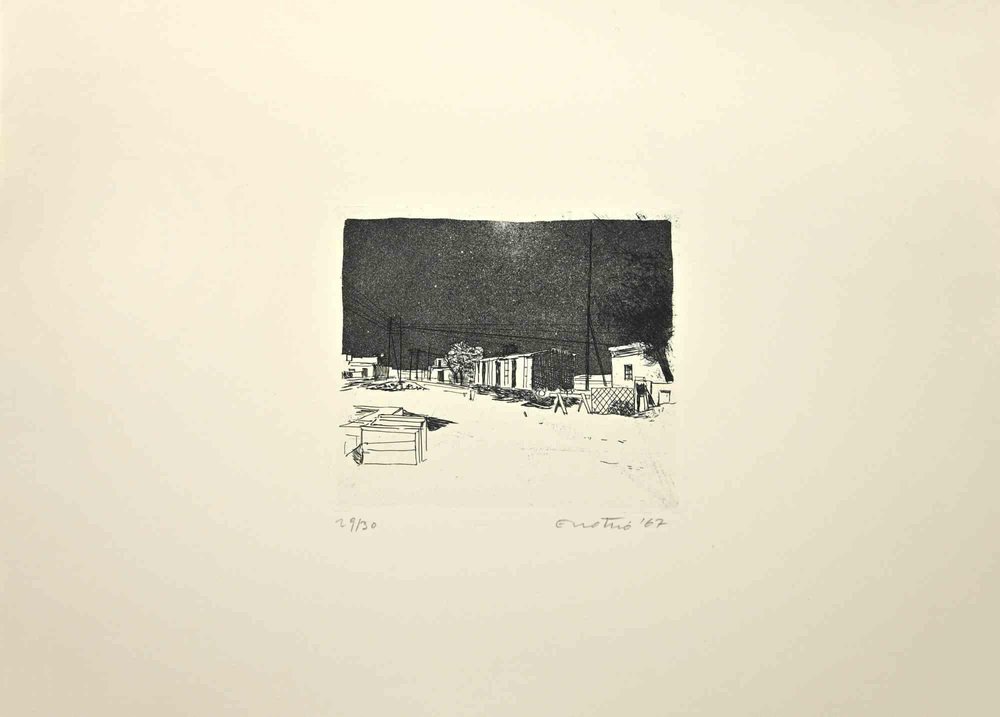 Enotrio Pugliese, Landscape, Etching and Aquatint, 1967