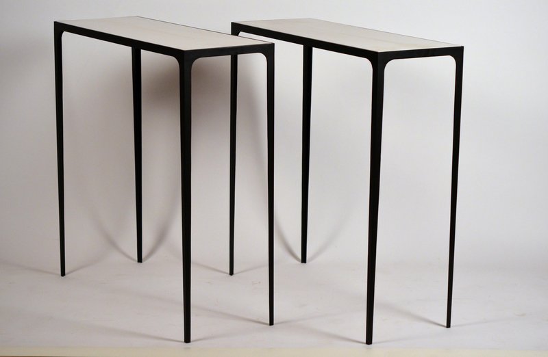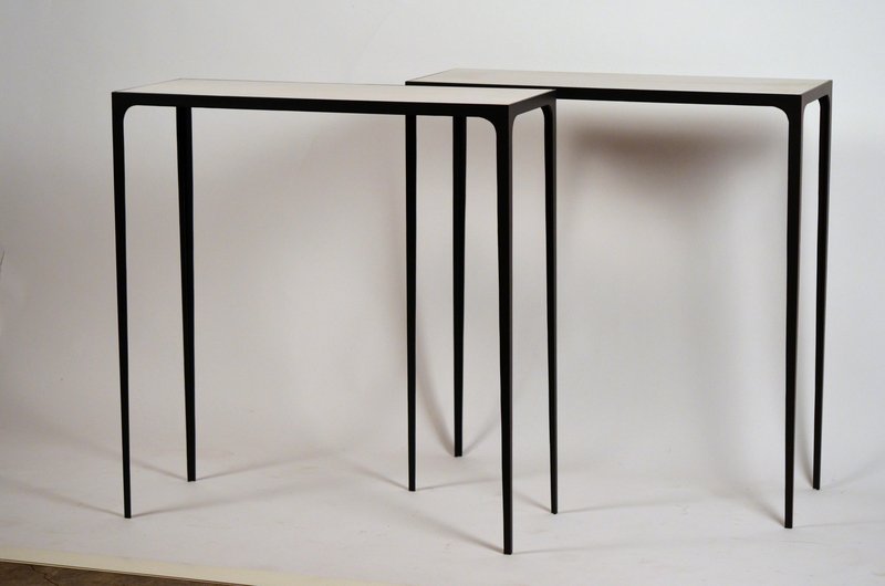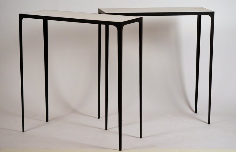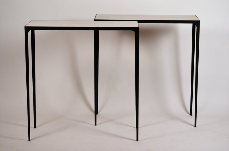 Esquisse Wrought Iron and Parchment Consoles by Atelier Cabanel, Set of 2