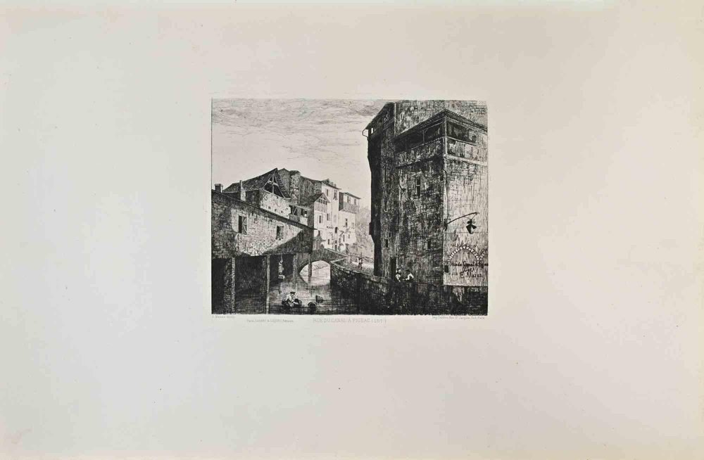 Étienne Mazas, Rue Du Canal à Figeac, Etching, 1870s