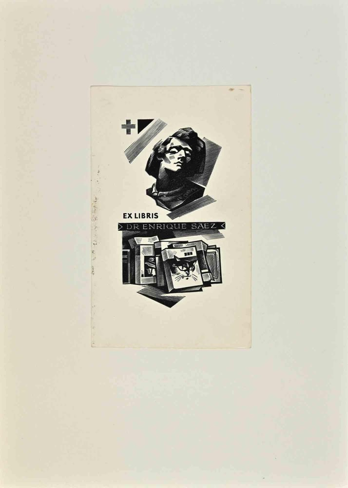 Ex Libris: Dr Enrique Saez, Woodcut, Mid 20th Century