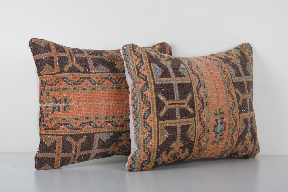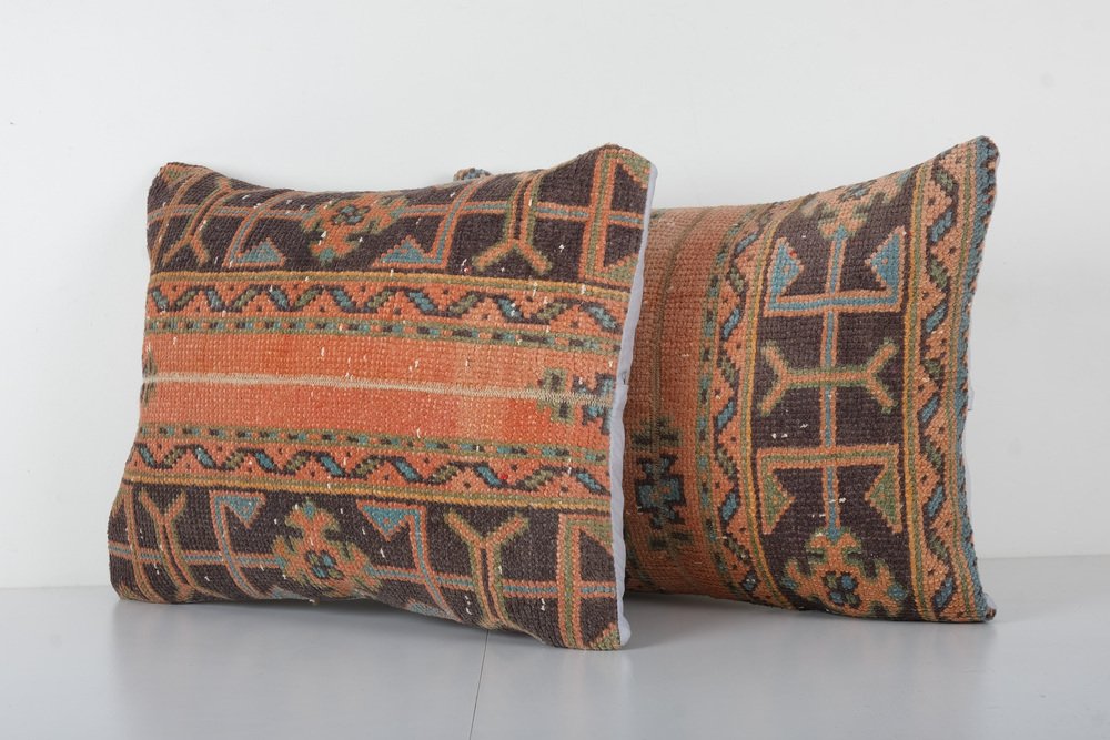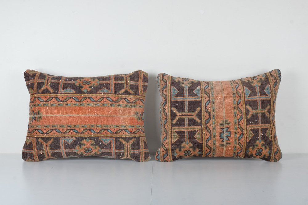 Faded Wool Rug Lumbar Cushion Covers, Set of 2