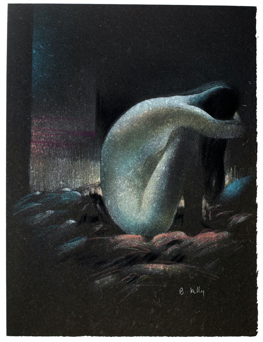 Femme Nue Recroquevillée - Original Lithograph by B. Kelly - 1980s 1980s