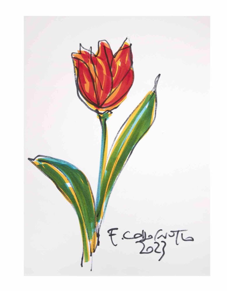 Ferdinando Codognotto, Red Tulip, Marker Drawing, 2023