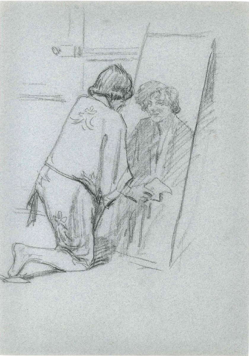 Figure in the Mirror - Pencil Drawing Mid 20th Century Mid 20th century