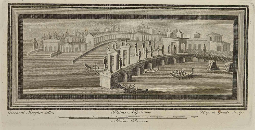 Filippo de Grado, Ancient Roman Fresco Herculaneum, Etching, 18th Century