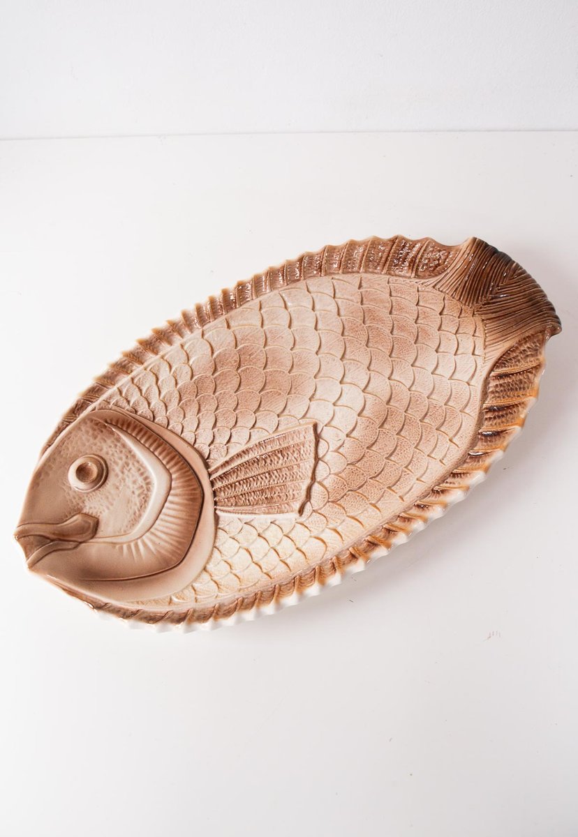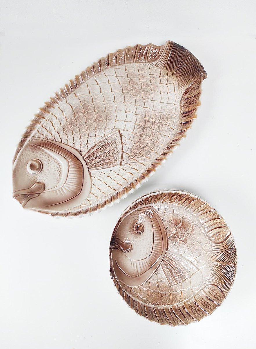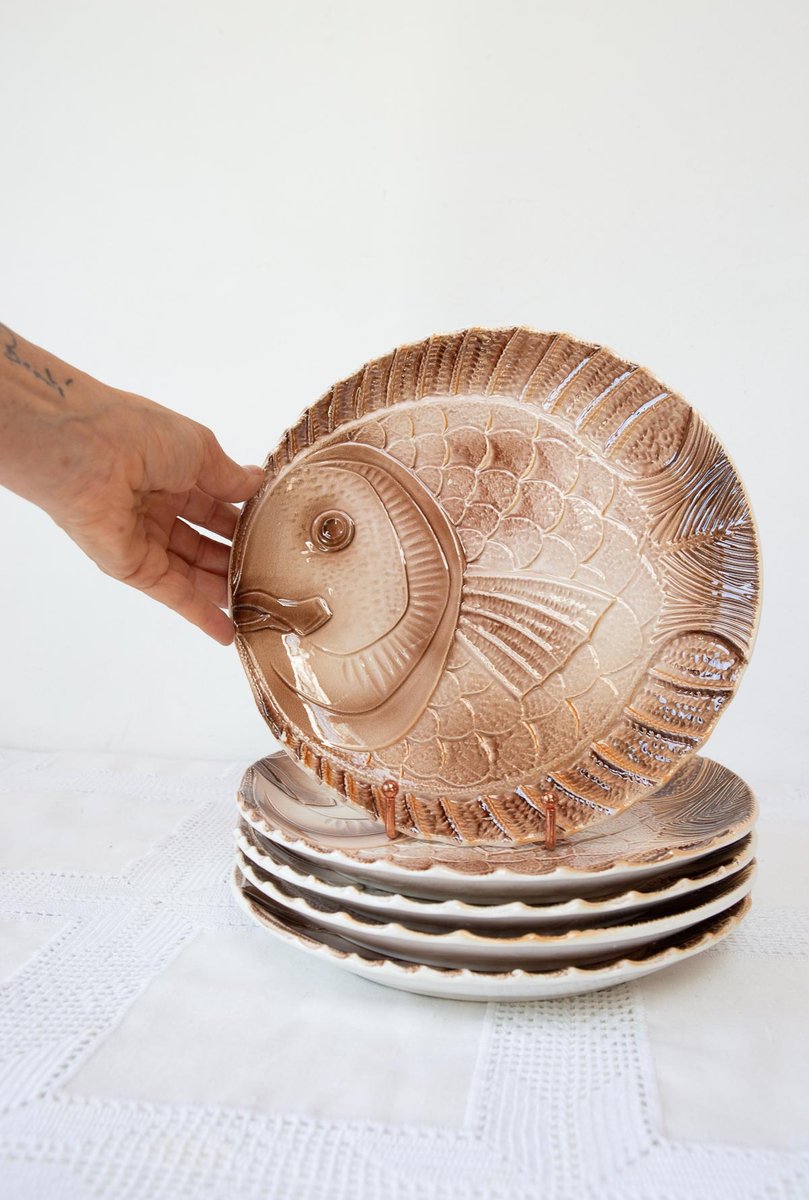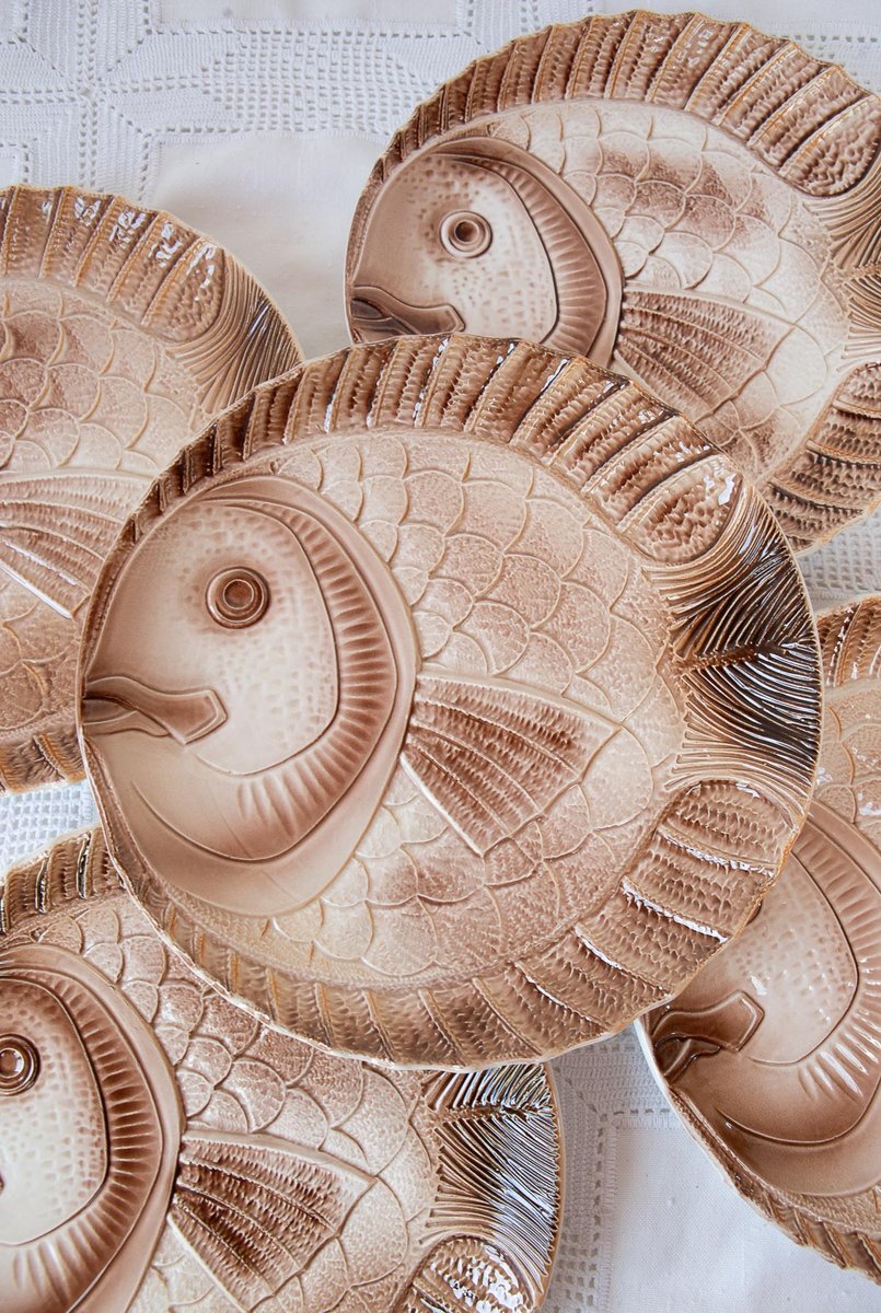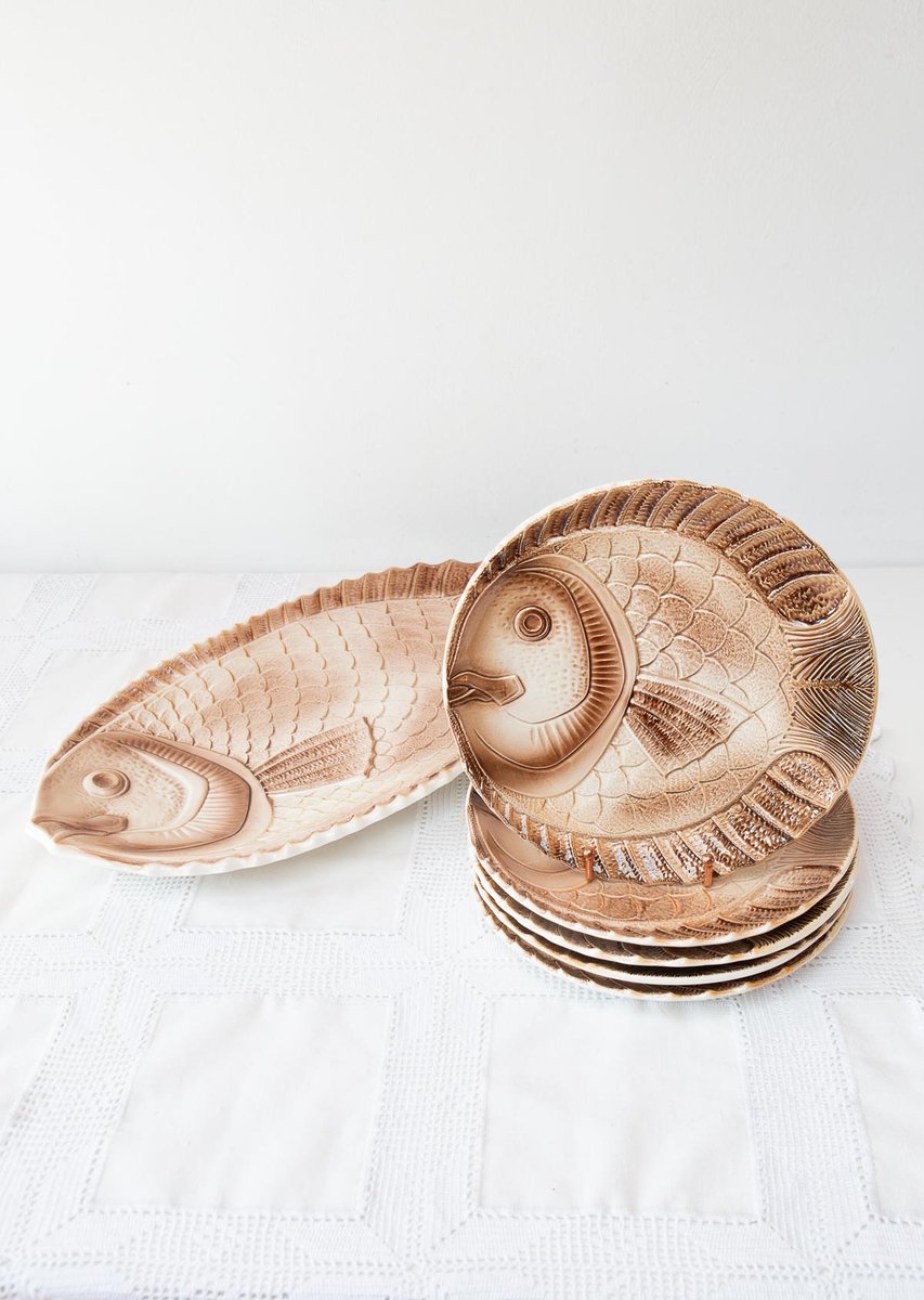 Fish Serving Set with Platter and Plates by Sarreguemines, 1960s, Set of 6
