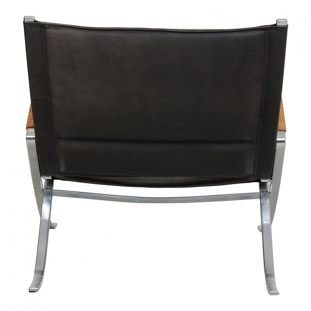 Kastholm and Fabricius favored a functionalist approach and a minimalist aesthetic, always aimed at simplicity and timelessness. Their lounge chairs and sofas were made almost exclusively in leather and steel—in contrast to many of their contemporaries, who preferred to work with wood. Before the duo parted ways in the late 1960s, they designed numerous pieces for Kill, including important designs like the Scimitar Chair (1962); Bo-562 Sofa and Bo-562 Chair (1963); Scimitar Table (1964); X Chair (1968), which bears a striking resemblance to Mies van der Rohe’s Barcelona Chair (1947); and FK 710 Skater Chair (1968). Both the FK 6725 "Tulip" Chair (1965)—which was the first winner of the Germany’s Gute Form prize in 1969—and the Grasshopper Chaise Lounge (1968) have become modernist icons.