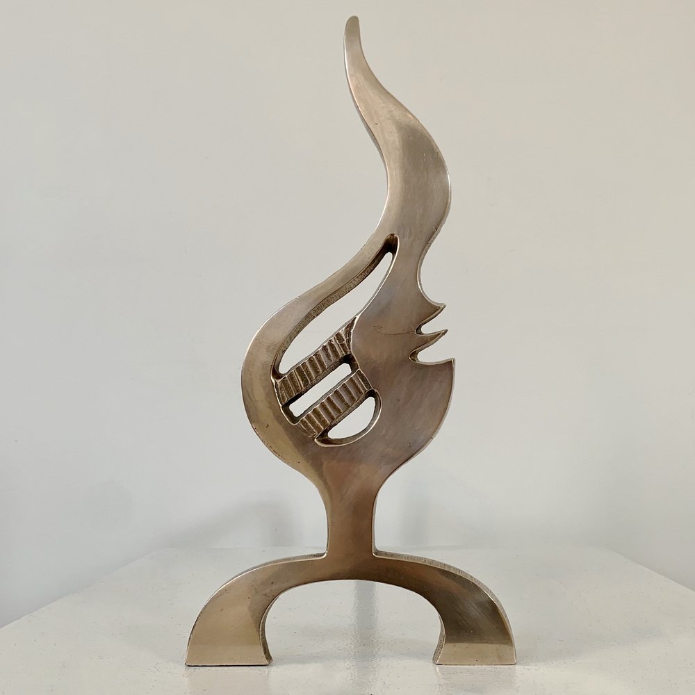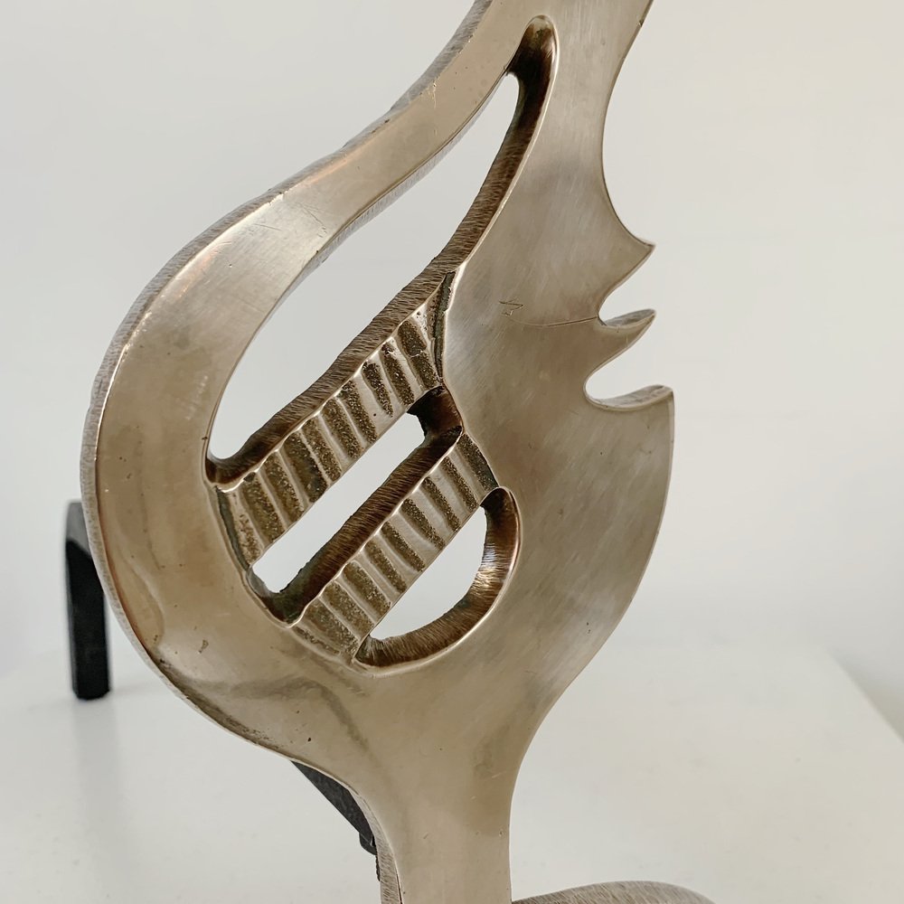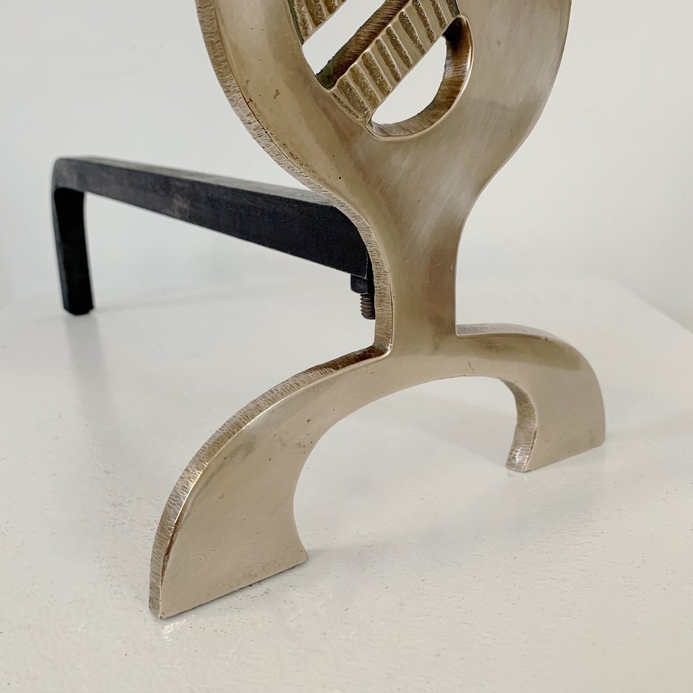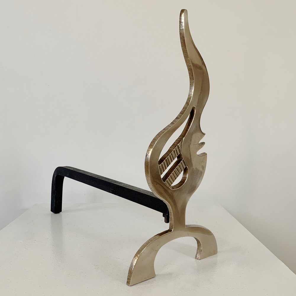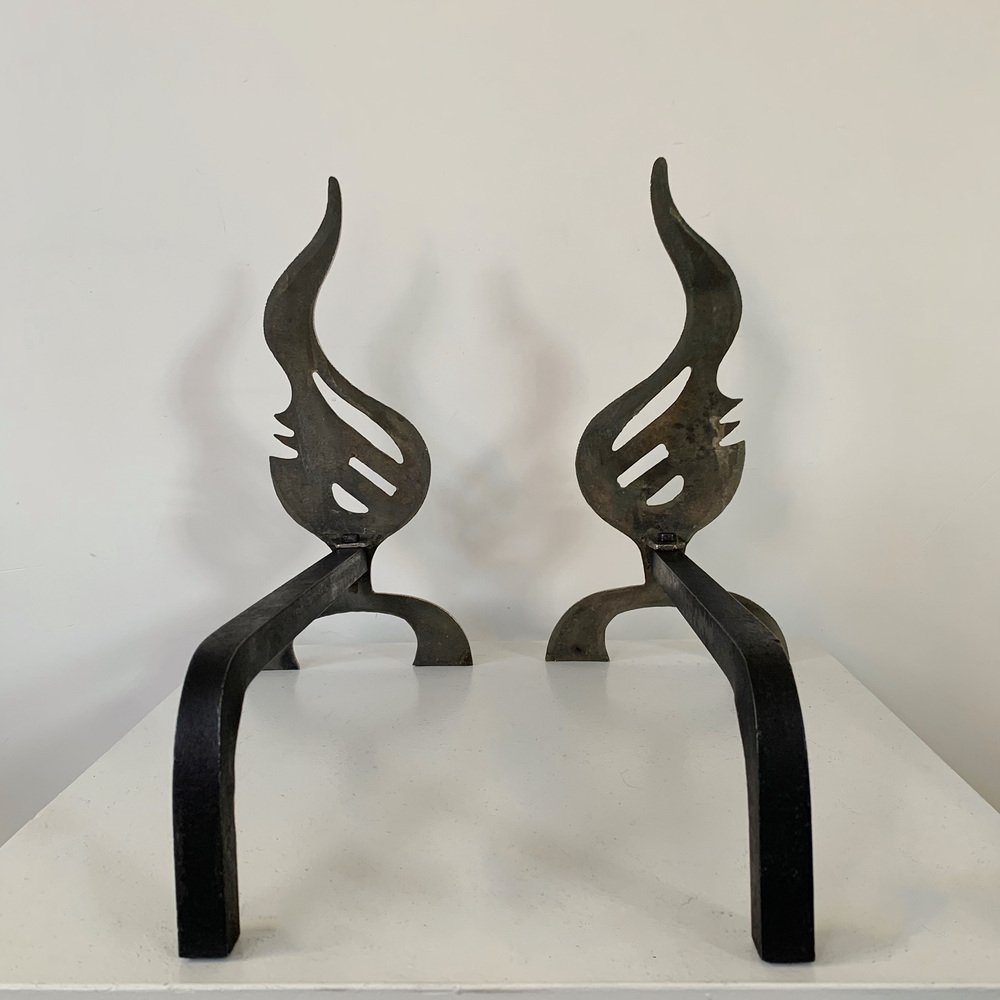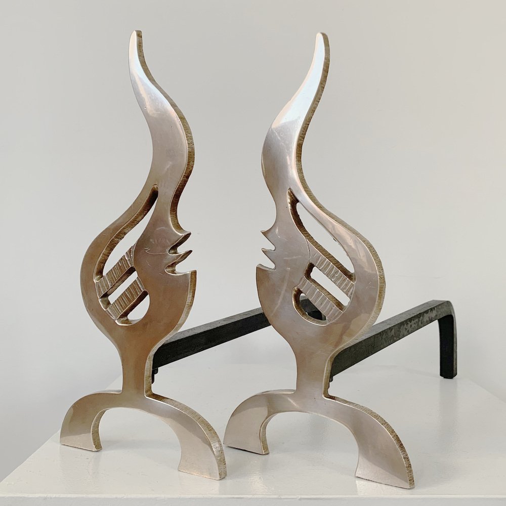 Flame Brass Andirons, France, 1960s, Set of 2