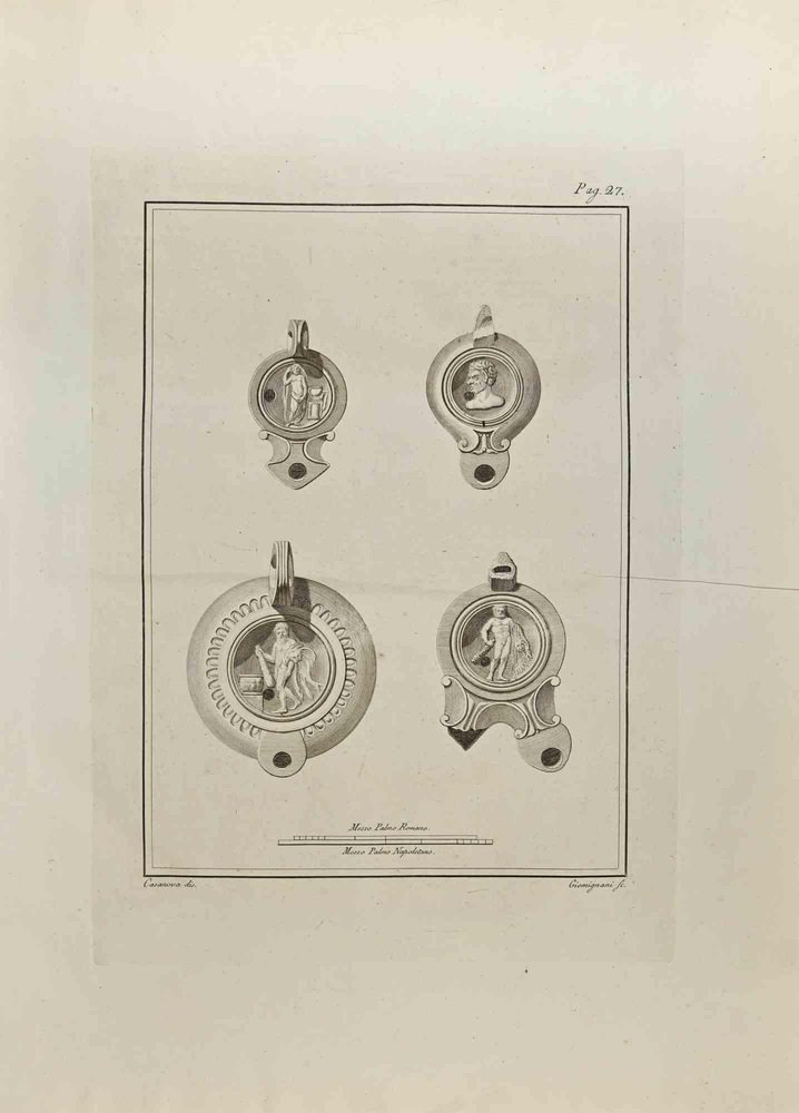 Francesco Giomignani, Hercules on Oil Lamp, Etching, 18th Century