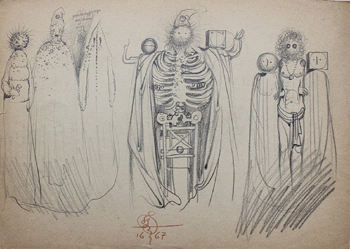 Franciszek Starowieyski, Lightbulbs, Drawing on Paper, 1967