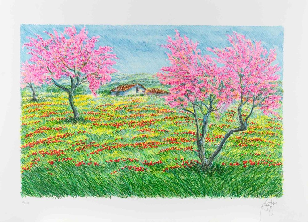 Franco Azzinari, Spring Landscape, Lithograph, 1980s