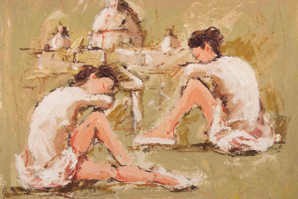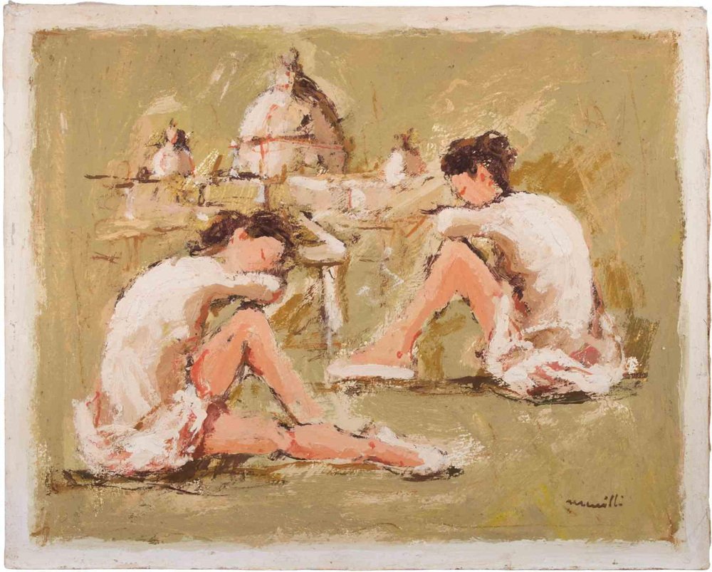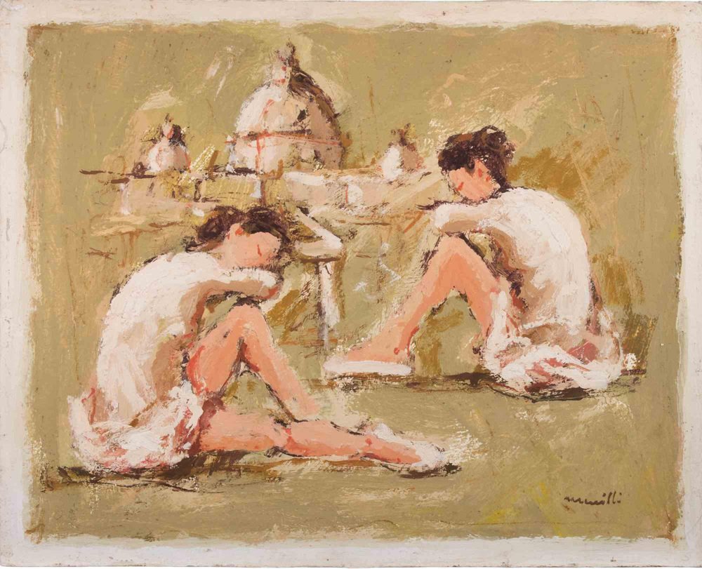 Franco Marzilli, Ballerinas with Saint Peter (Rome) on the Background, 1970s, Oil on Canvas