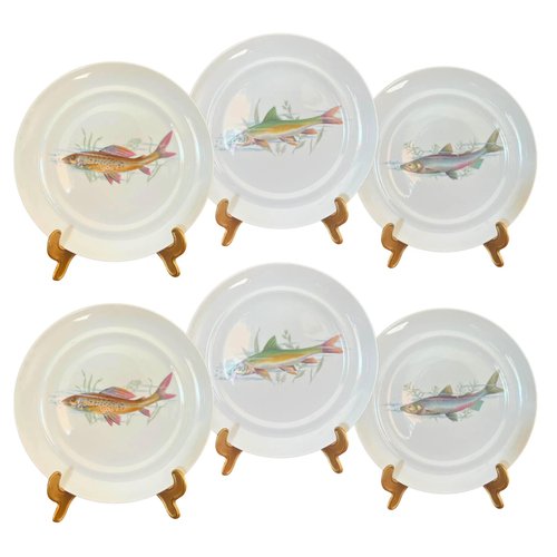 French Limoges Porcelain Fish Platter Set, 1930, Set of 6