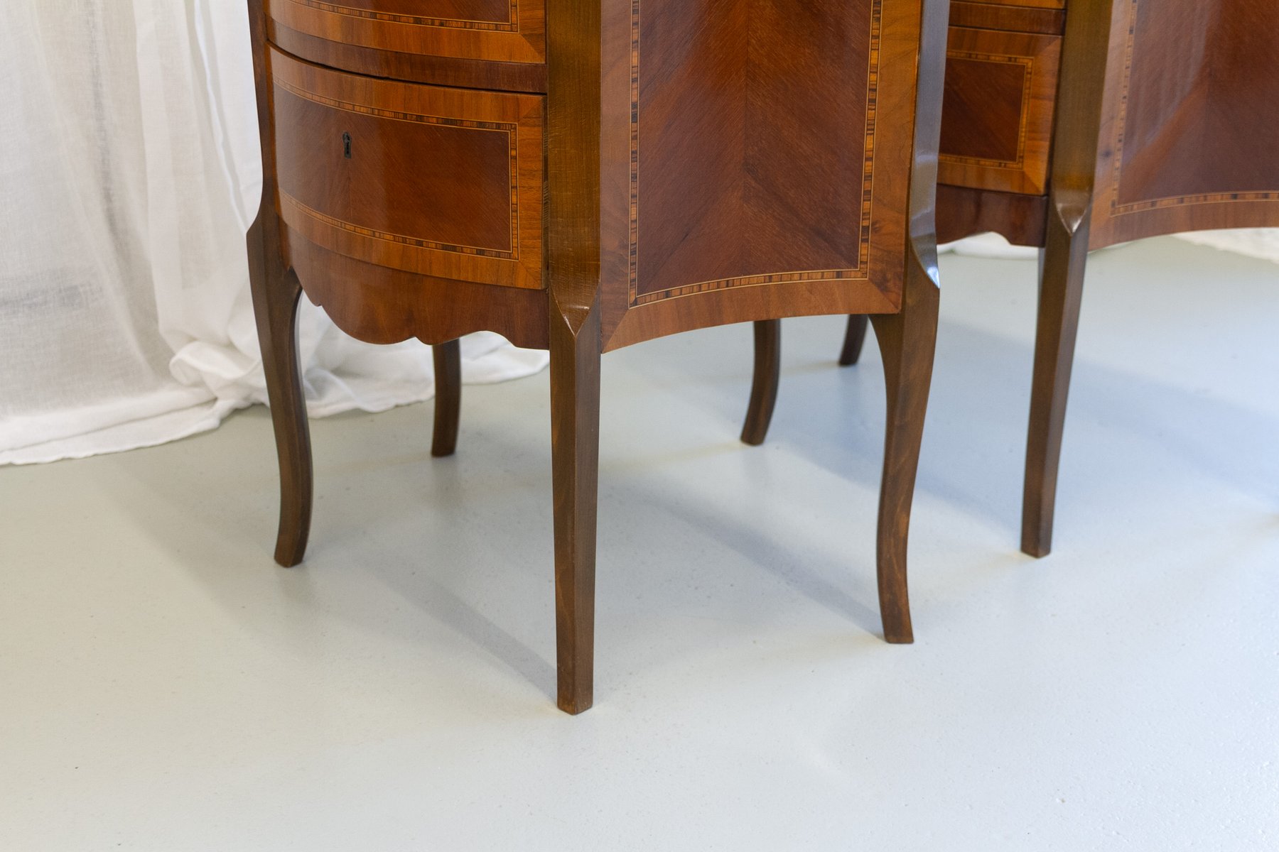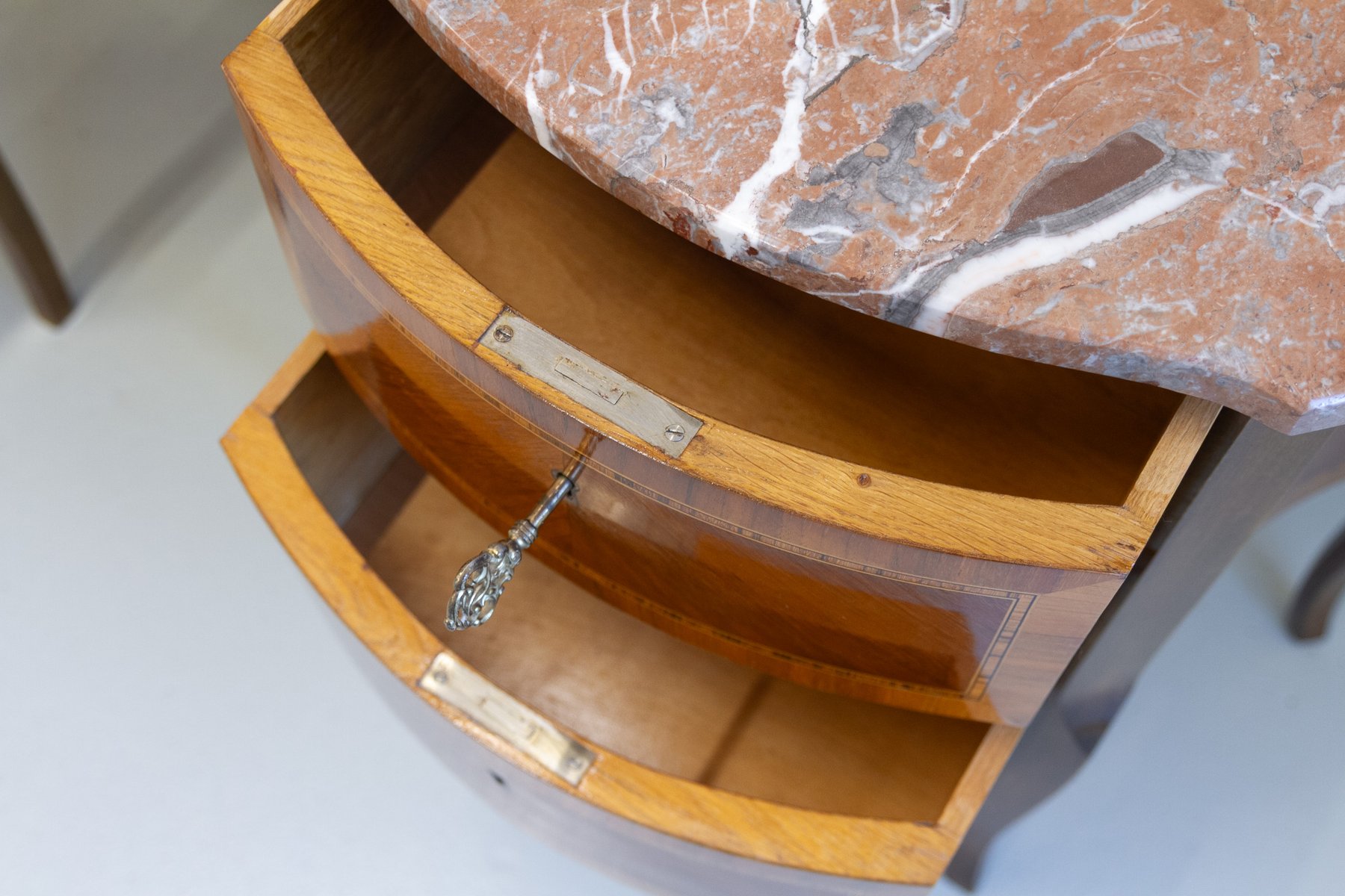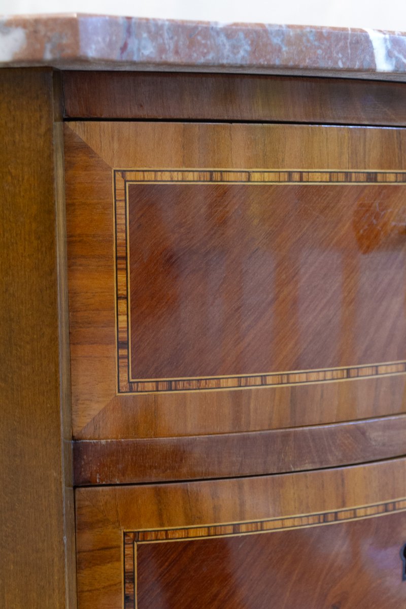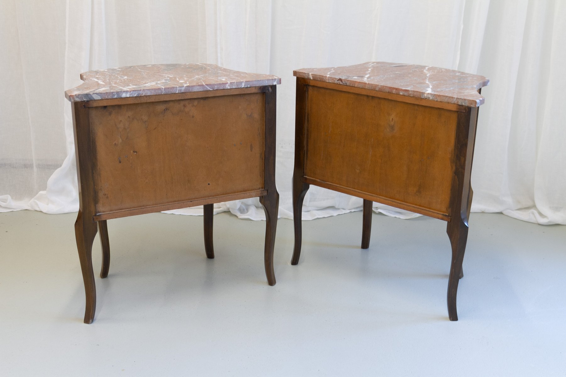French Louis XV Marquetry Nightstands with Marble Tops, 1910s, Set of 2