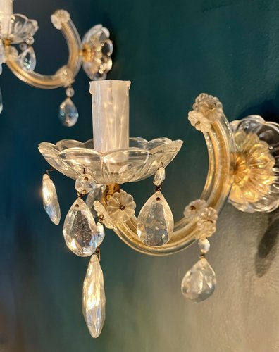 French Maria Theresa Cut Crystal Sconces, 1950s, Set of 2