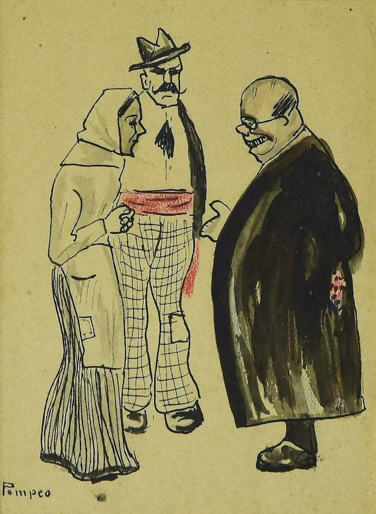 Gabriele Galantara, Figures, 1908, Mixed Media