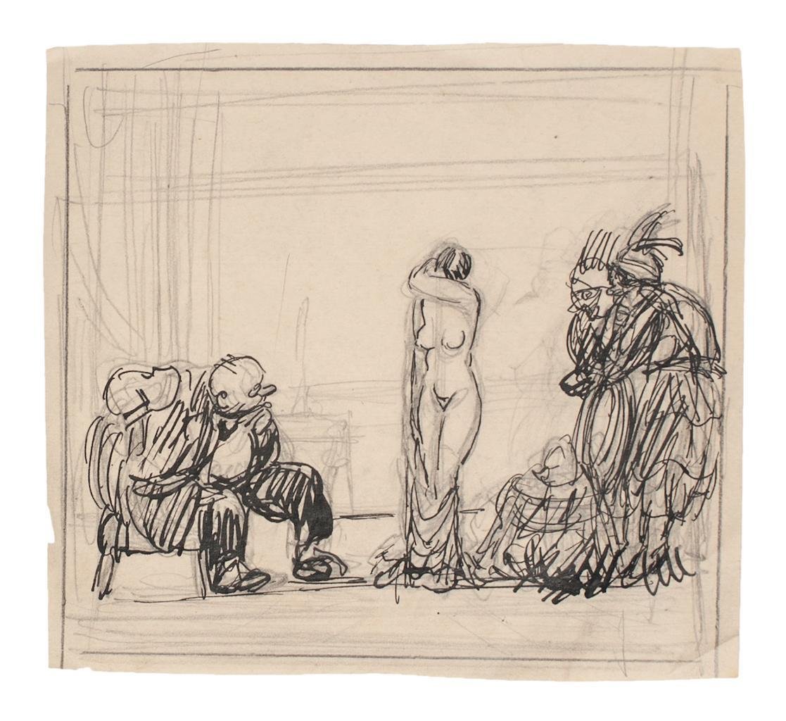 Gabriele Galantara, Satiric Scene for L’asino, Pencil and Ink, Early 20th Century