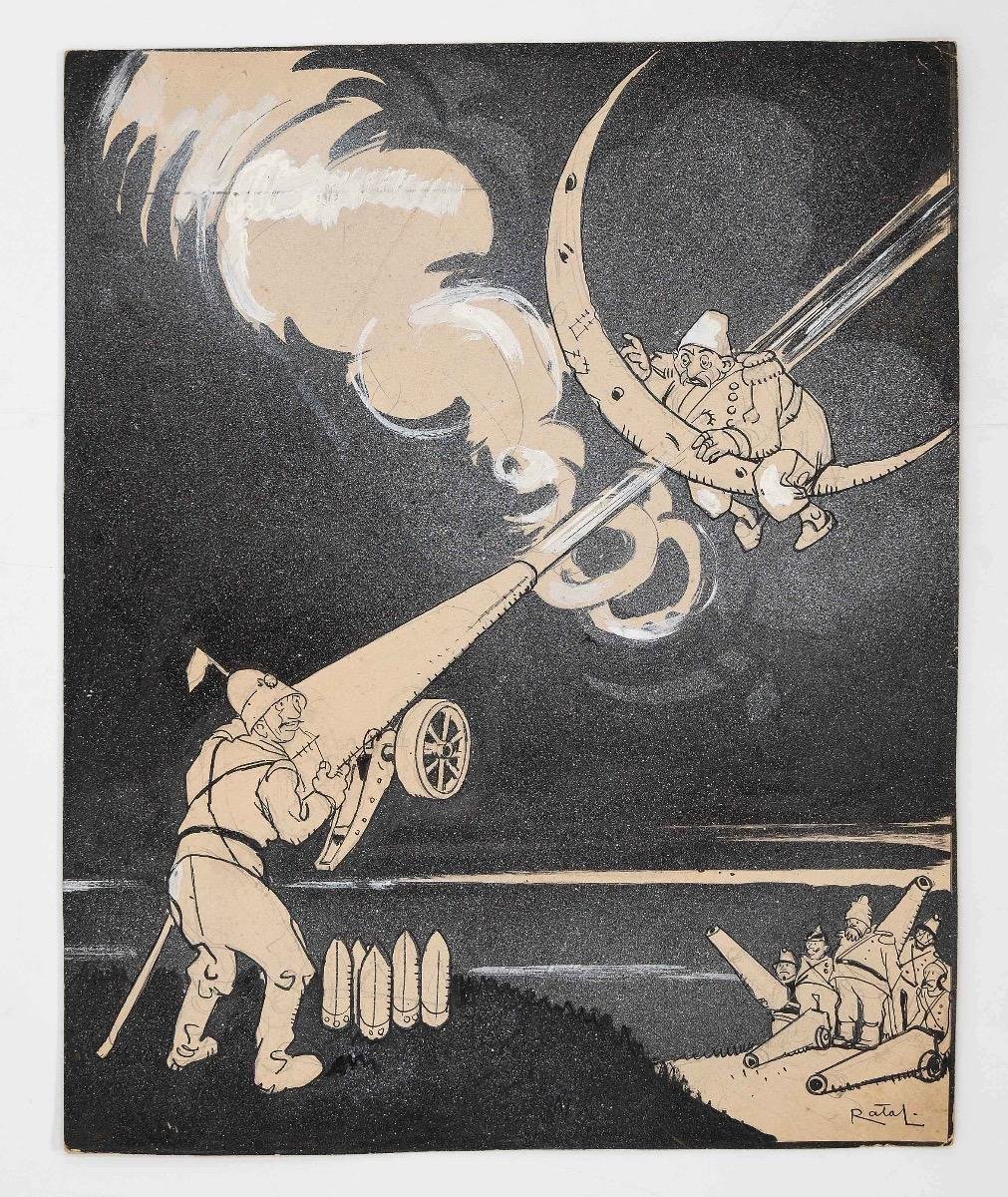 Gabriele Galantara - Shoot Missiles - Ink and Watercolor - 1910s