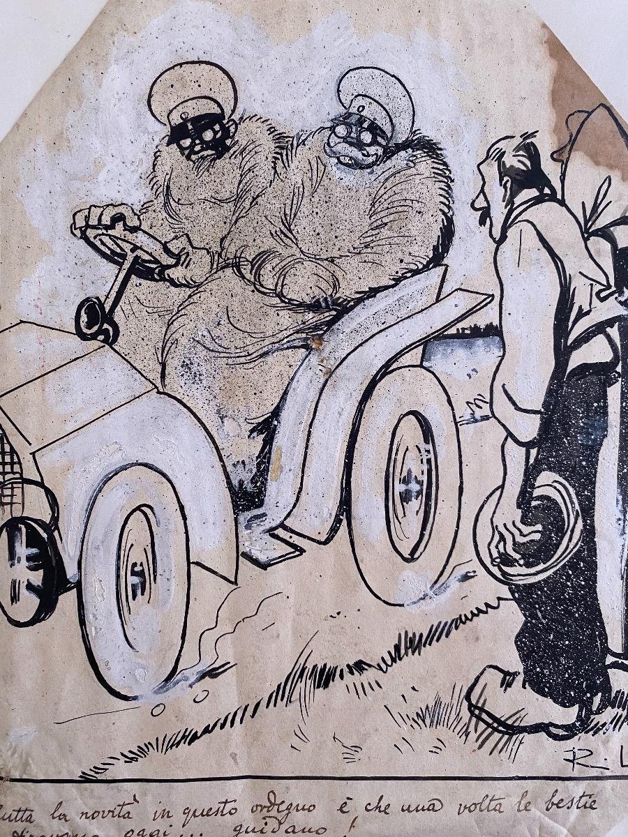 Gabriele Galantara, The Car, China Ink, 1910s