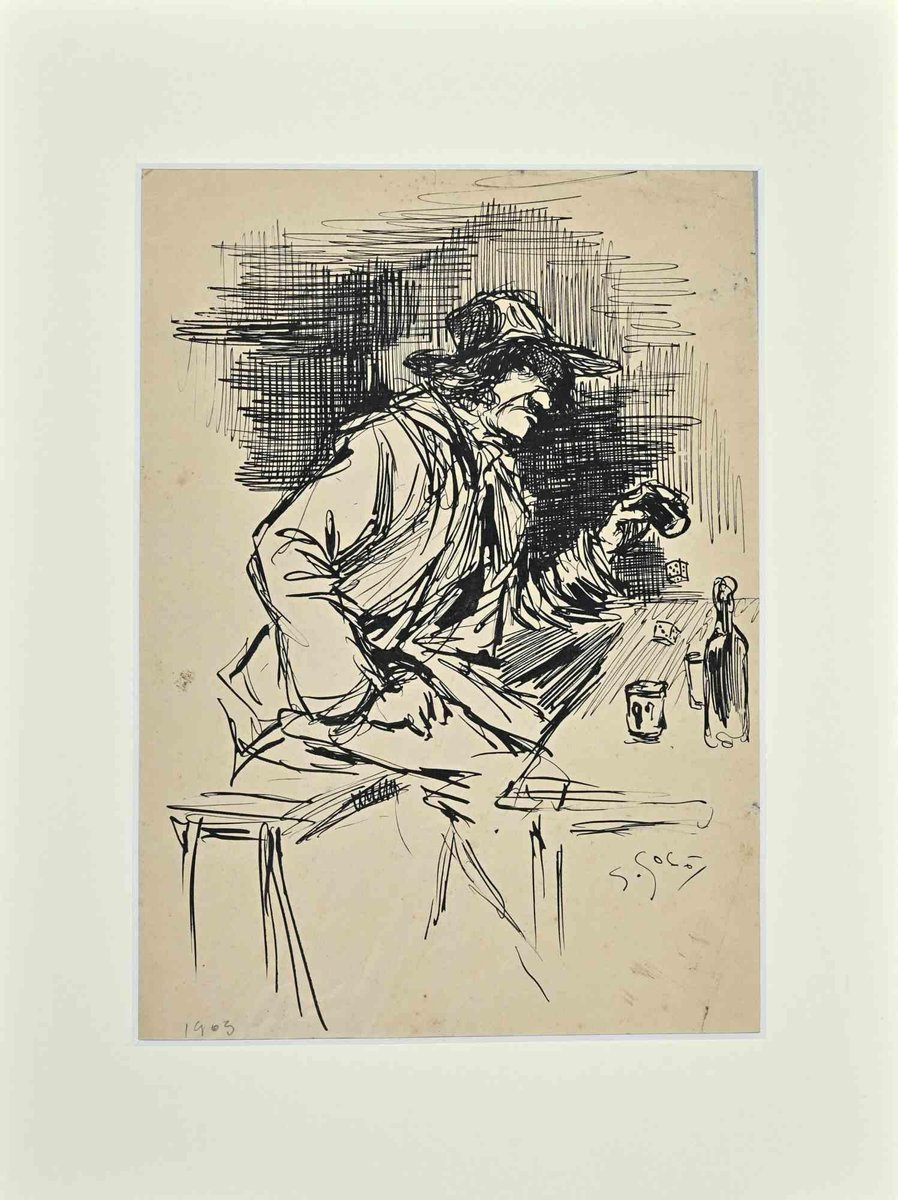 Georges Gobo, Portrait, Original Drawing in China Ink, 1903