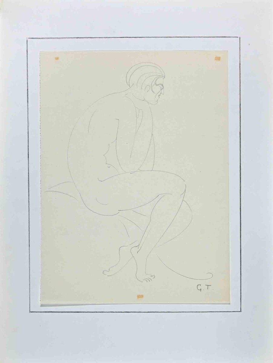 Georges-Henri Tribout, Nude Man, Original Pencil Drawing, 1950s