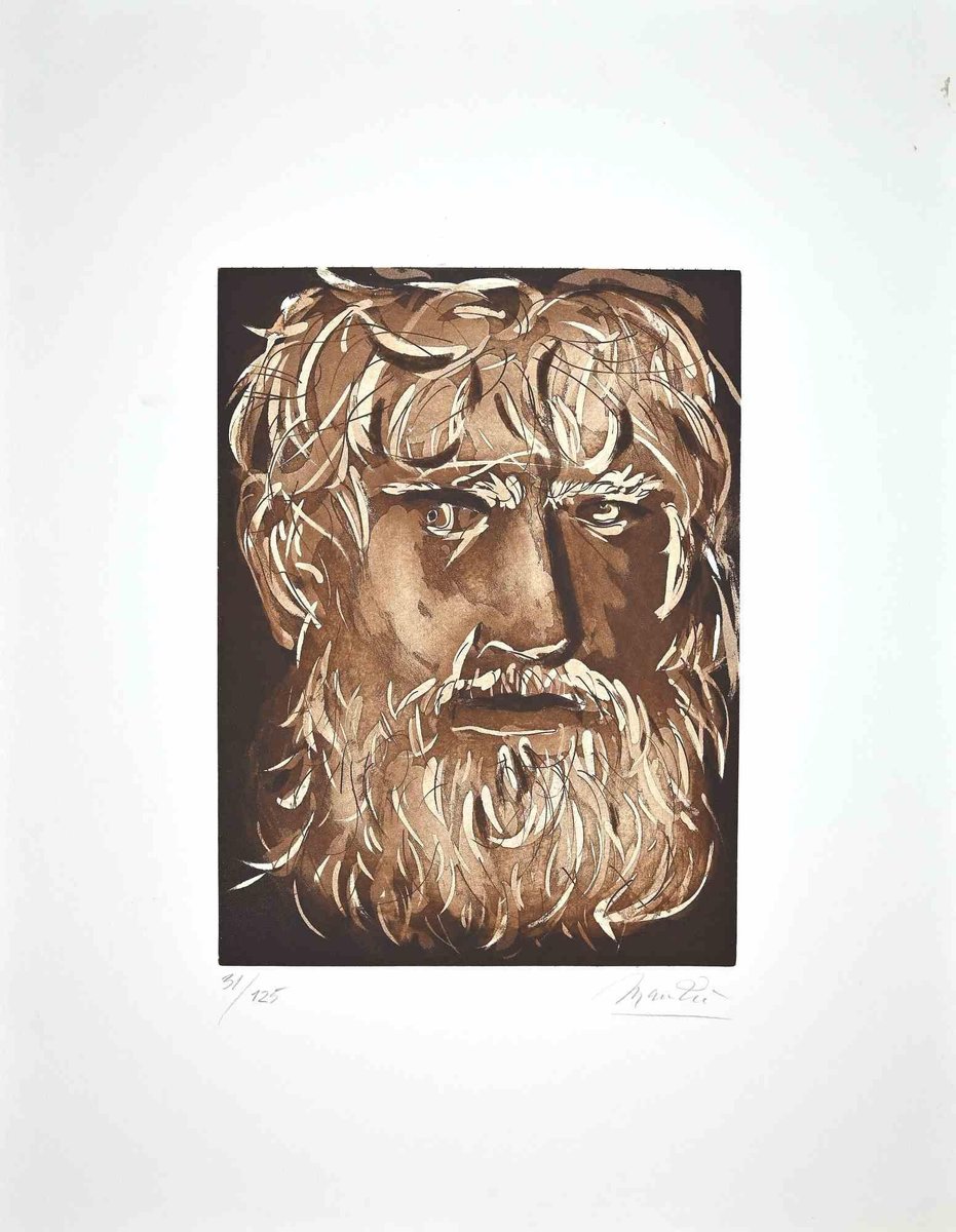 Giacomo Manzú, Portrait of King Oedipus, Original Etching, 1970