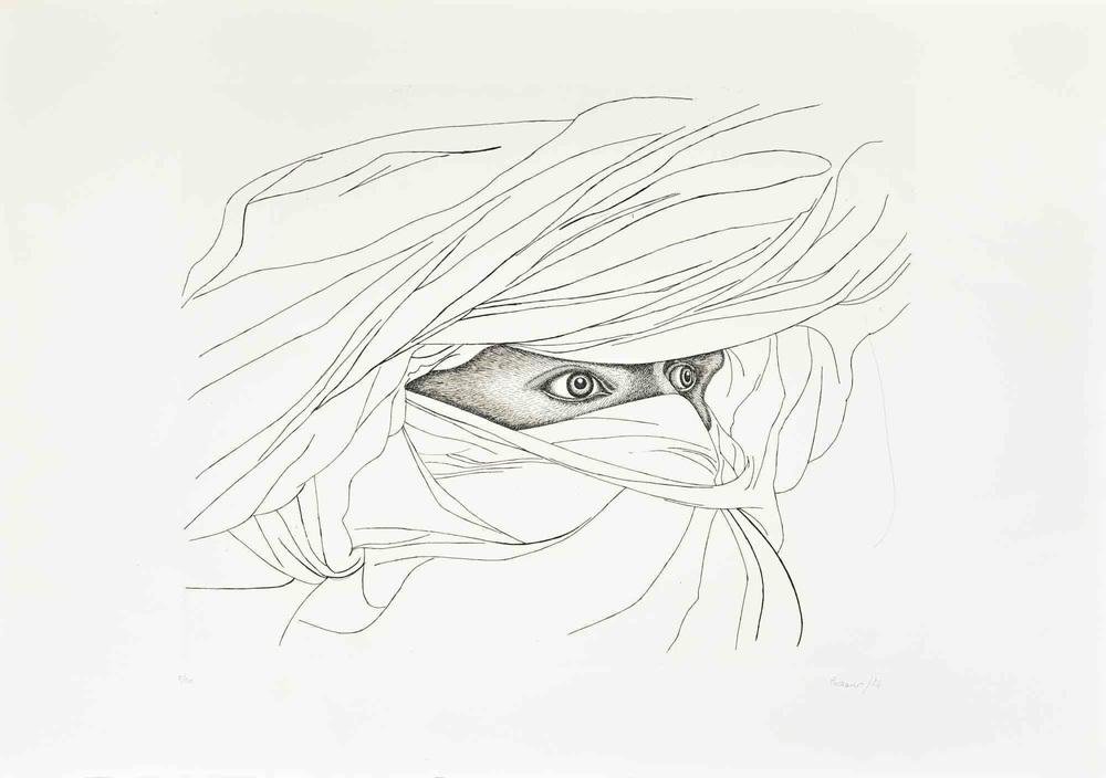 Giacomo Porzano, Arab Man, Etching, 1974