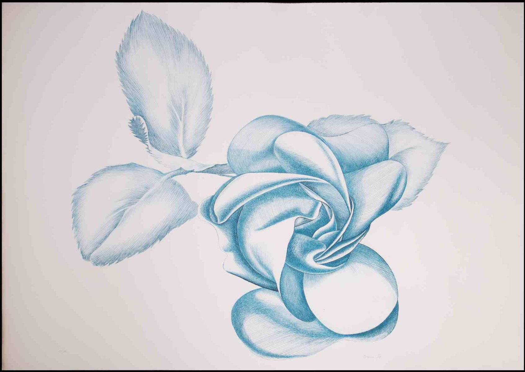 Giacomo Porzano, Blue Rose, Original Etching, 1970s