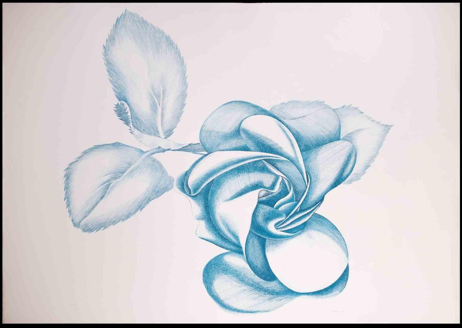 Giacomo Porzano, Blue Rose, Original Etching, 1970s