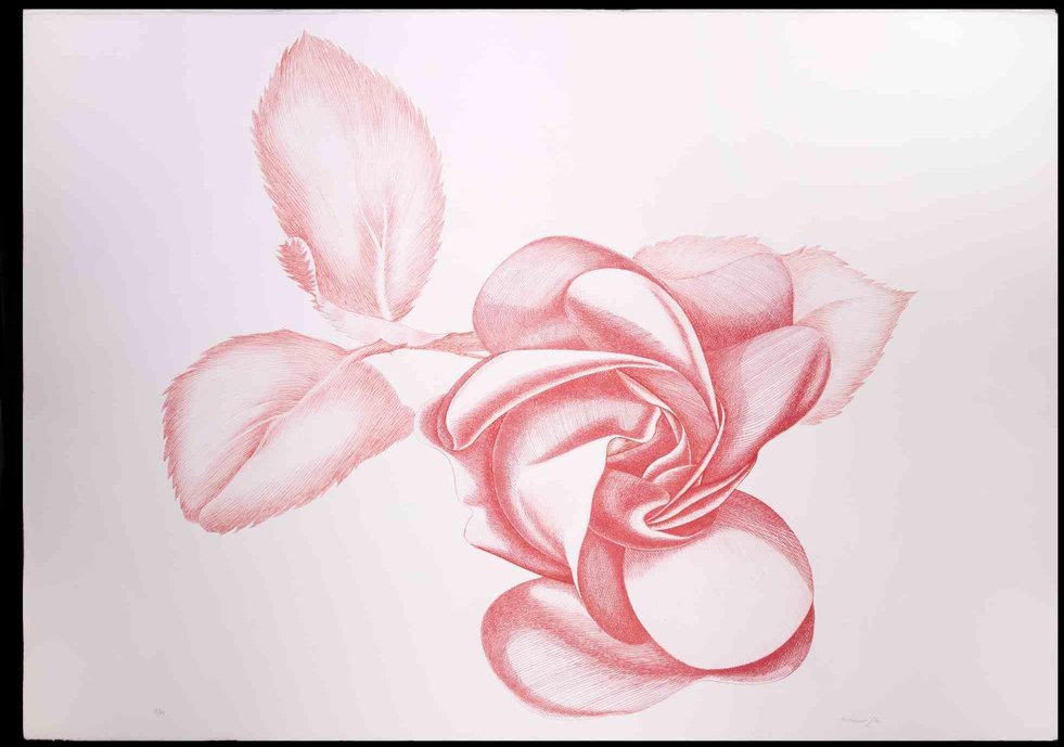 Giacomo Porzano, Red Rose, Original Etching, 1970s