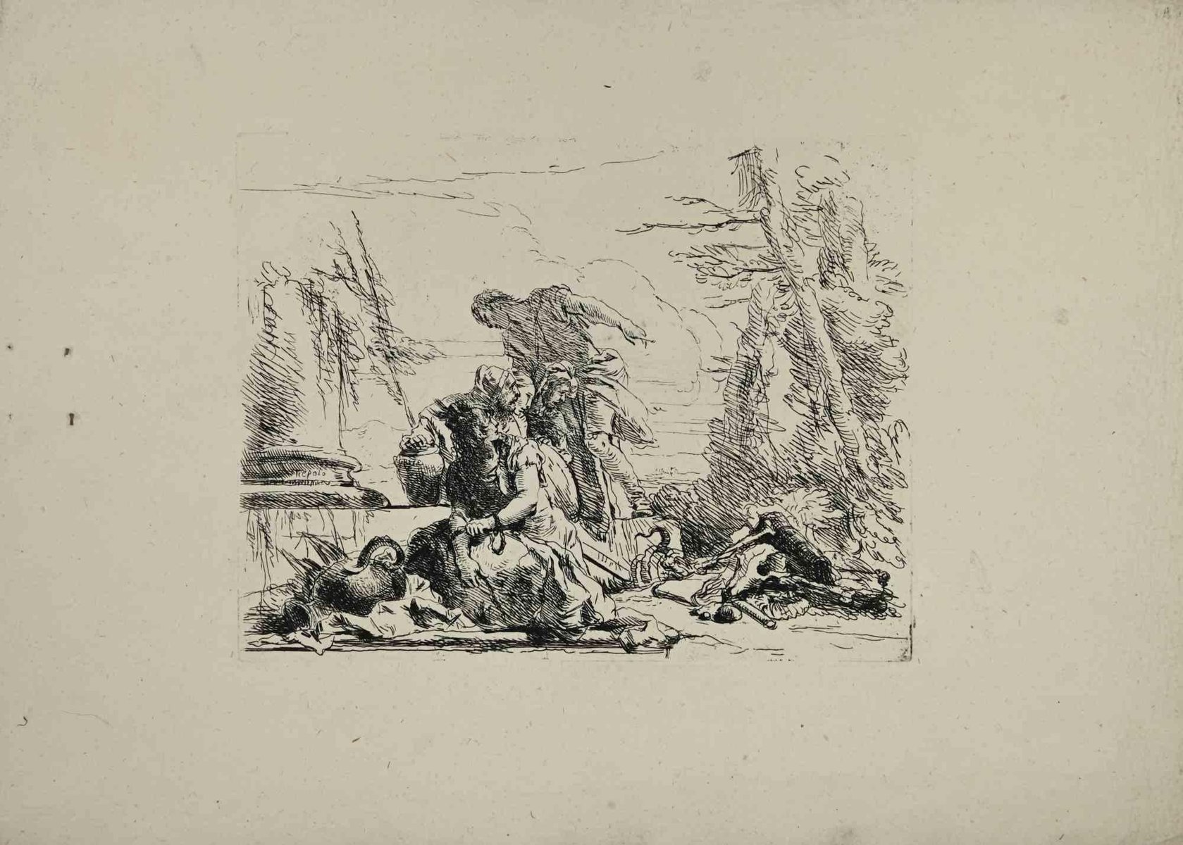 Giovanni Battista Tiepolo, Chained Woman and Four Figures, Etching, 1785