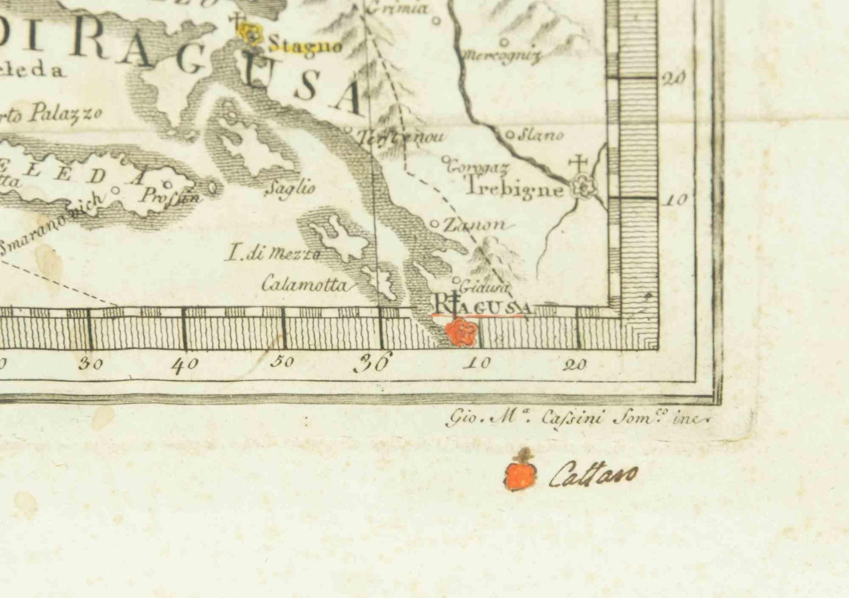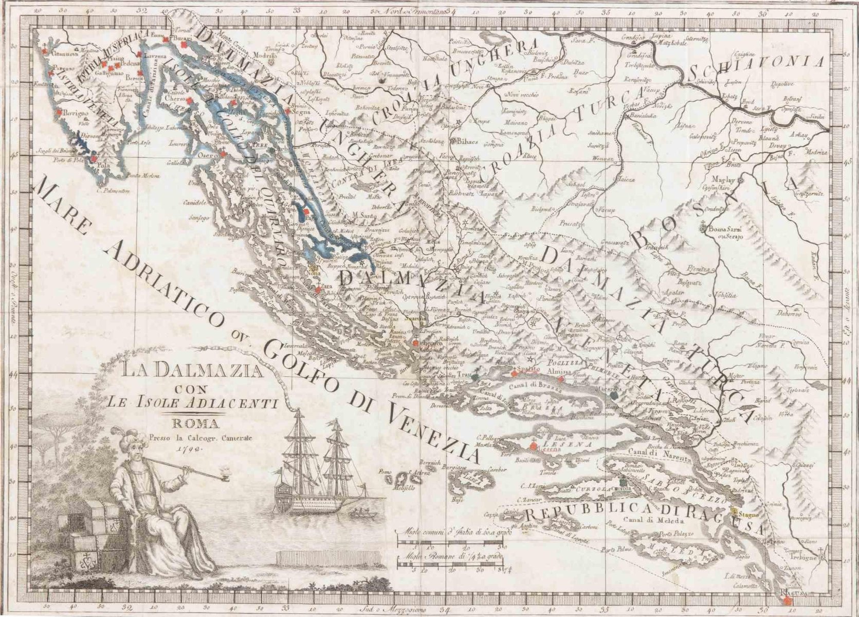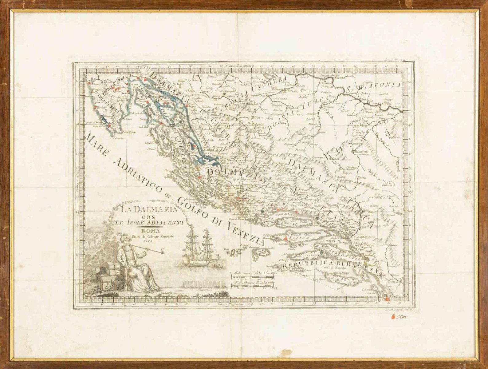 Giovanni Mignani, Map of Dalmatia & Adjacent Islands, Etching, 1792, Framed