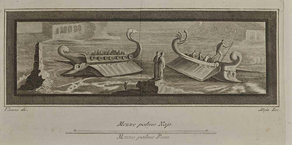 Giuseppe Aloja, Ancient Roman Boats, Etching, 18th Century, Framed