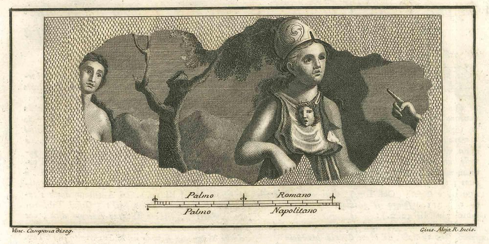 Giuseppe Aloja, Pompeian Fresco, Etching, 18th Century