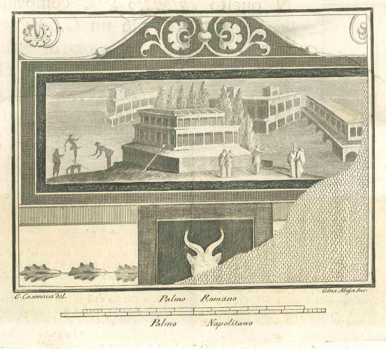 Giuseppe Aloja, Seascapes with Monument and Figures, Etching, 18th Century