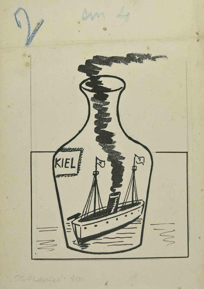Giuseppe Scalarini, The Bottle, Marker on Paper, 1918