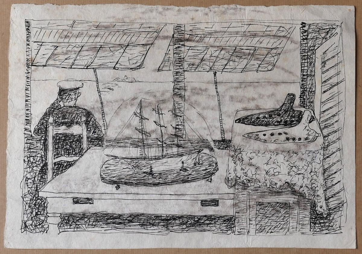 Giuseppe Viviani, Ocarina and Sea, Early 20th-Century, Ink Drawing
