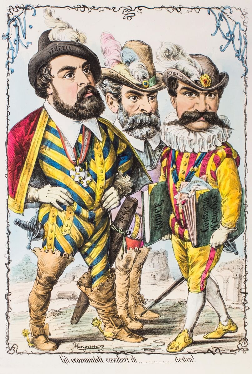 Gli Economisti Cavalieri di Destra - Original Lithograph by A. Maganaro - 1870s 1870s