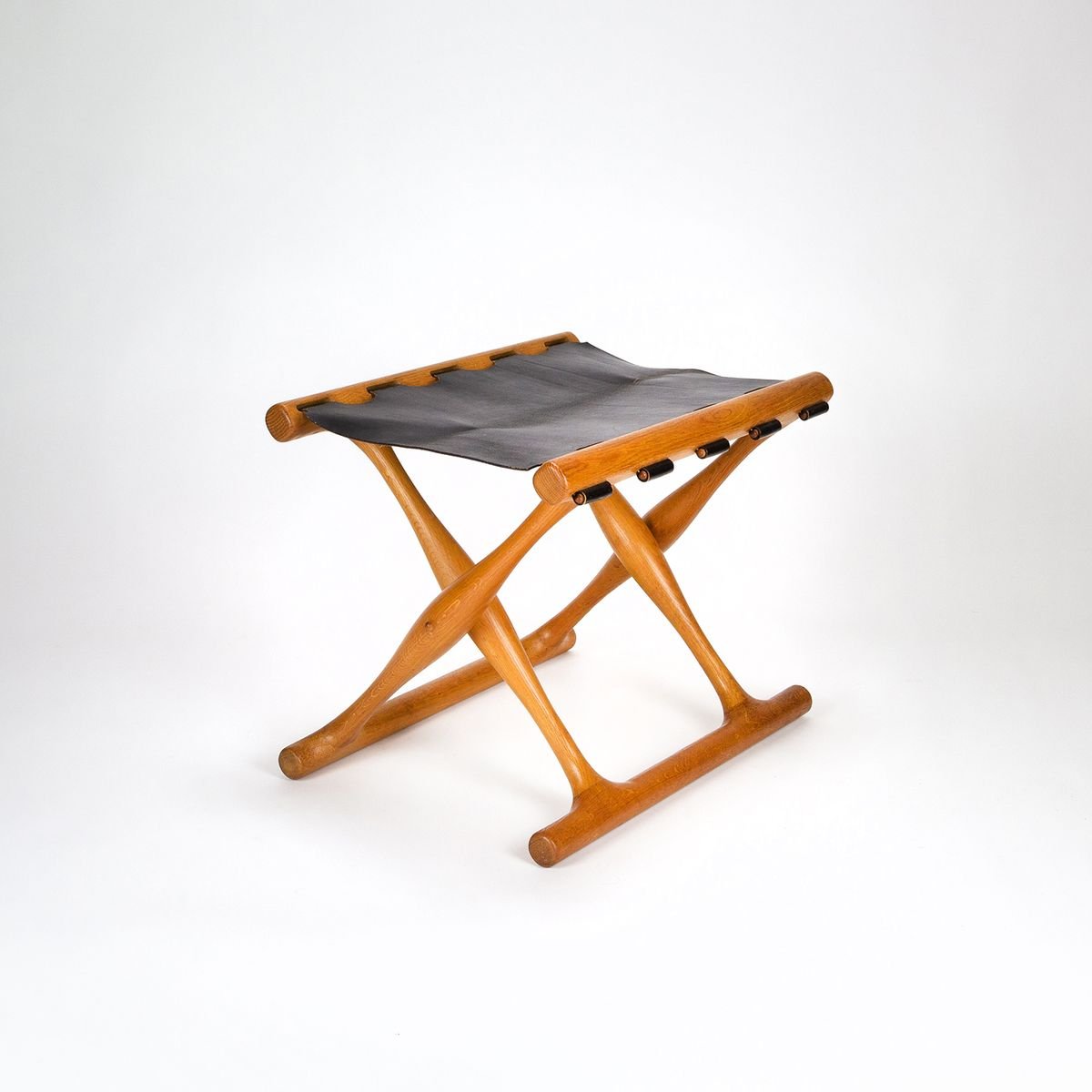 In 1960, Hundevad began production of the Guldhøj Chair (1950s), a reinterpretation of an ancient Nordic folding chair of the same name. The original version was first excavated in 1891 from a burial mound in Vamdrup and is the oldest preserved piece of furniture in Scandinavia, dating back to the Scandinavian Bronze Age, around the second half of the 1400s BC. Working with the National Museum of Denmark where the relic is housed, Hundevad took precise measurements and calculated ways to streamline the design for production. Using four types of wood—oak, teak, wenge, and rosewood—along with leather for the seat, Hundevad’s reproduction was an instant success, producing more than 15,000 copies, which were sold worldwide. The chair is still in production and can be purchased at the National Museum of Denmark’s gift shop.