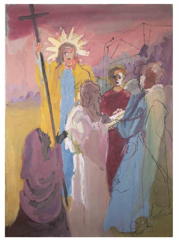 Gustave Bourgogne, Christ Talk, Watercolor & Ink, 1950s