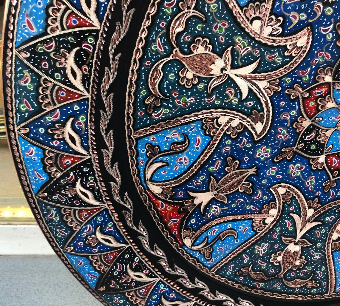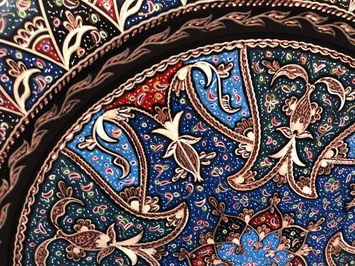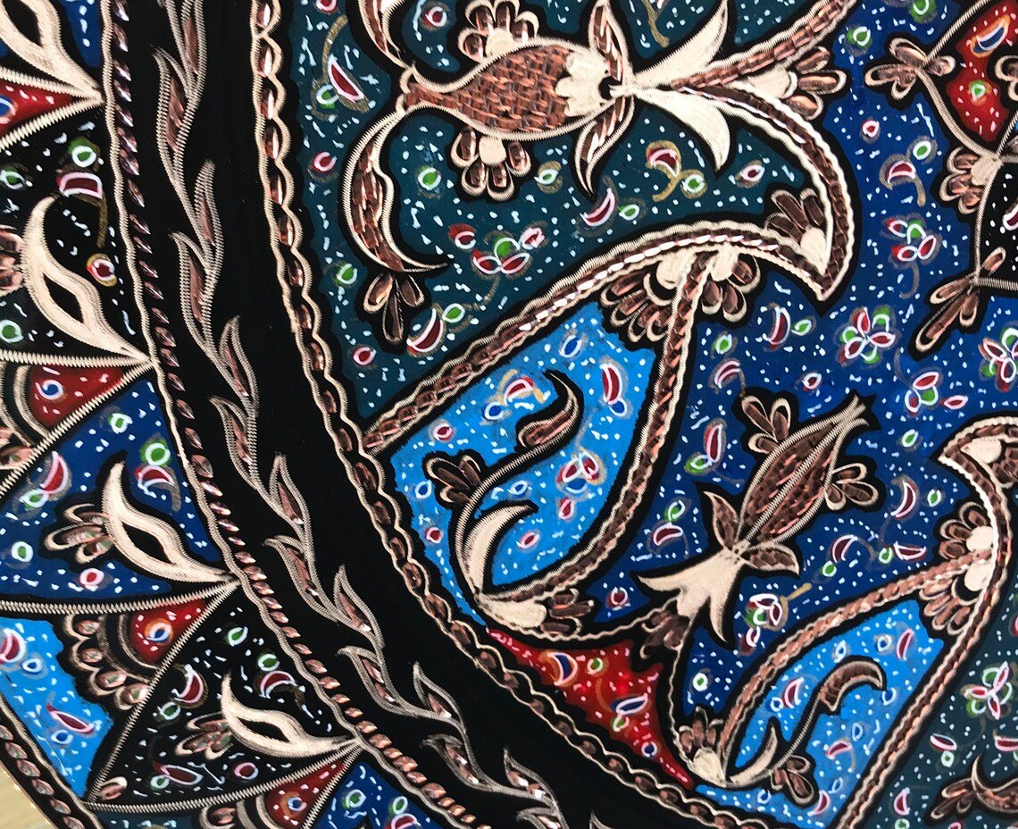 Hand Carved Colorful Tulip Design Copper Tray