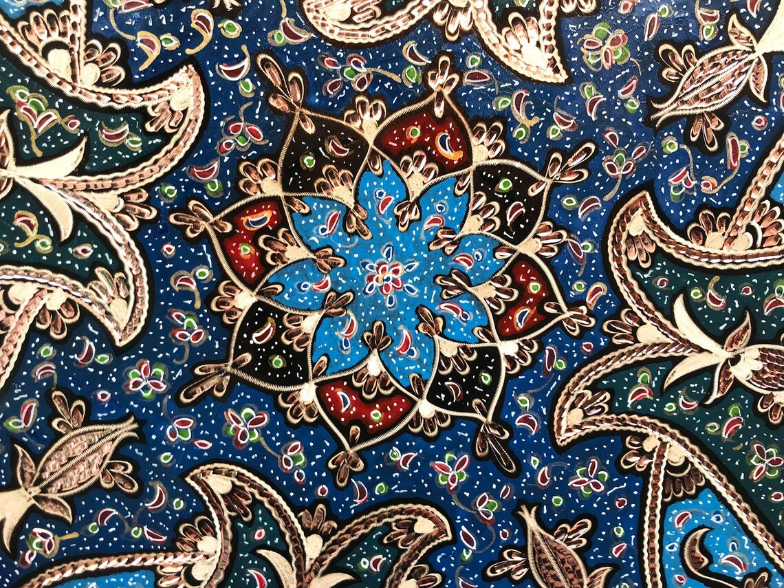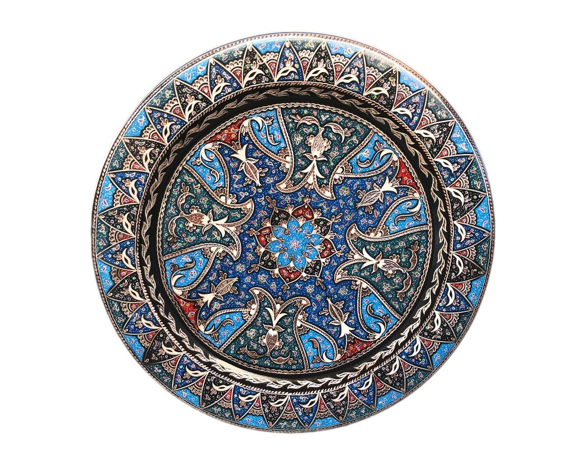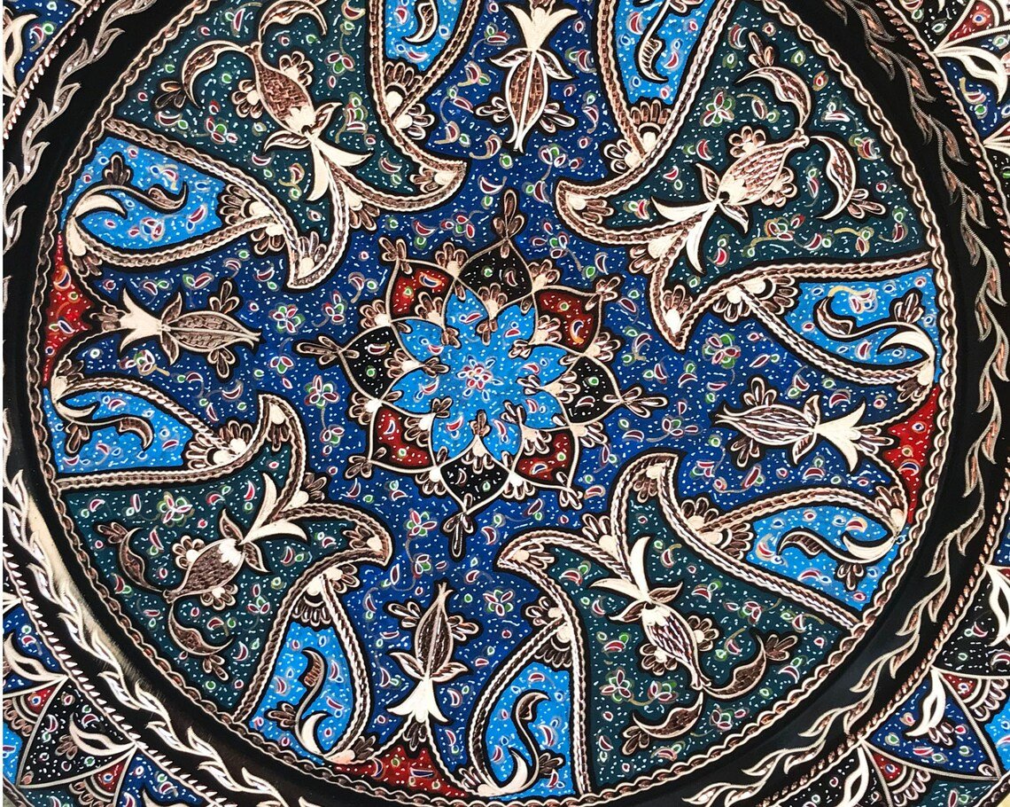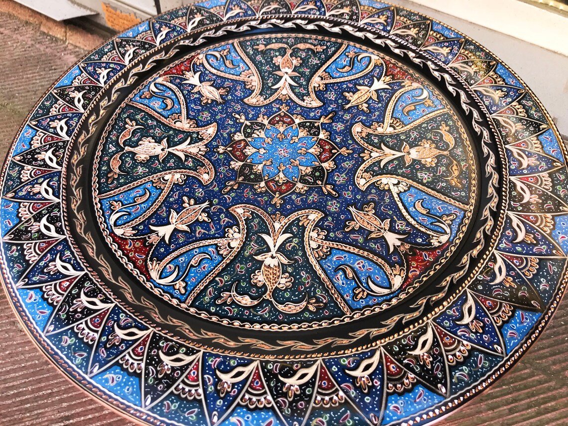 Hand Carved Colorful Tulip Design Copper Tray