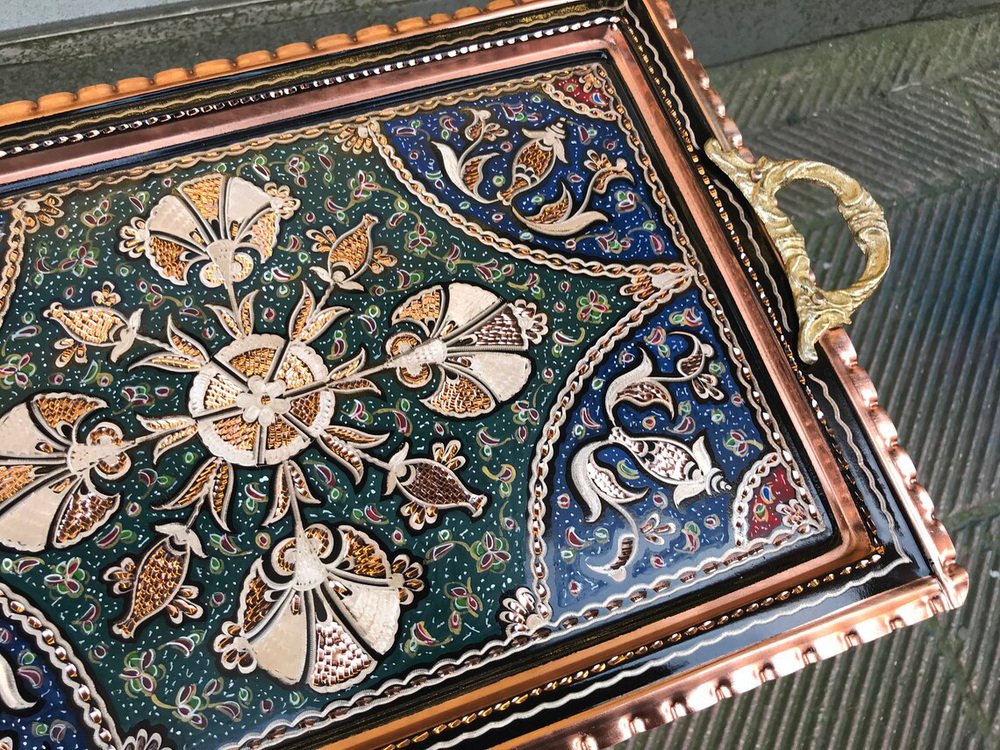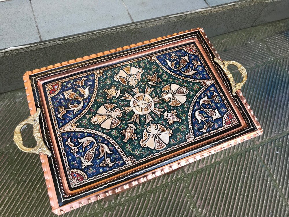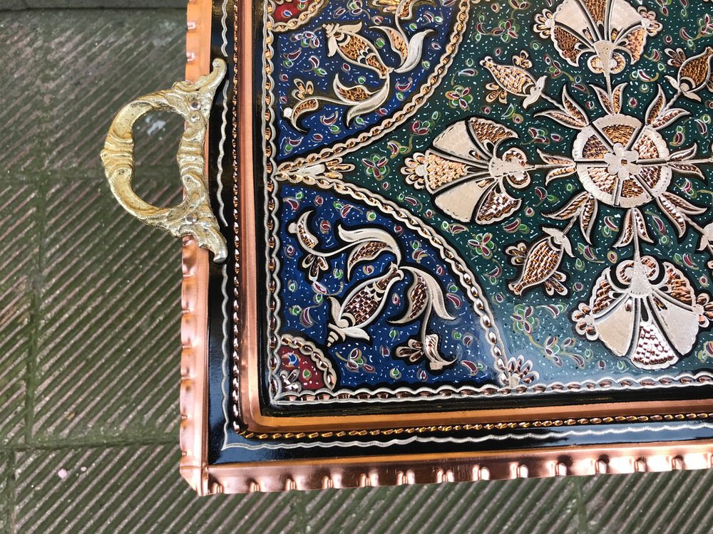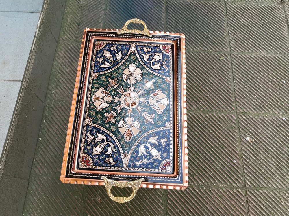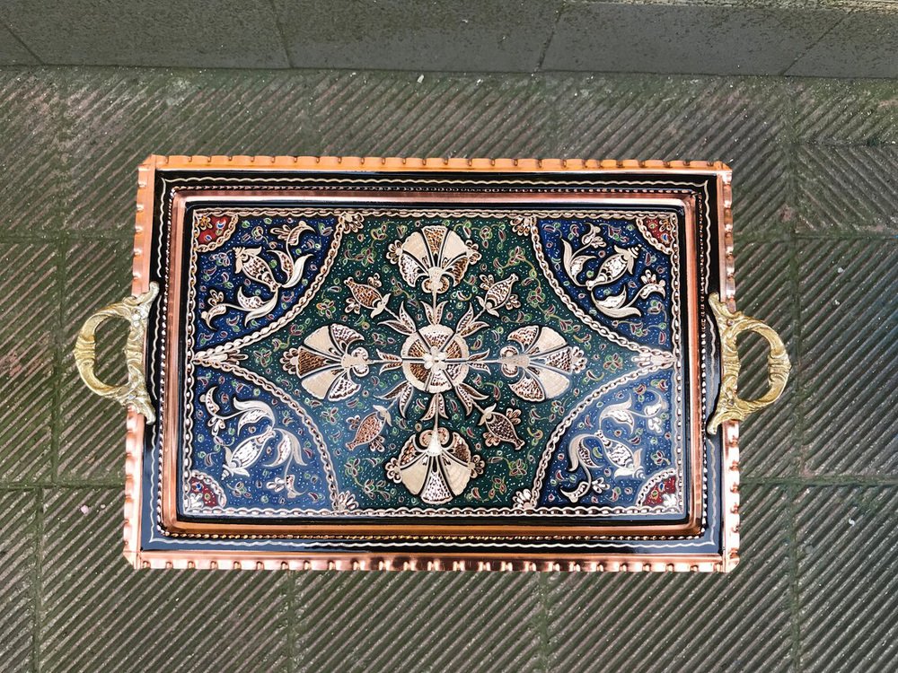 Handmade Etched Serving Tray with Handles