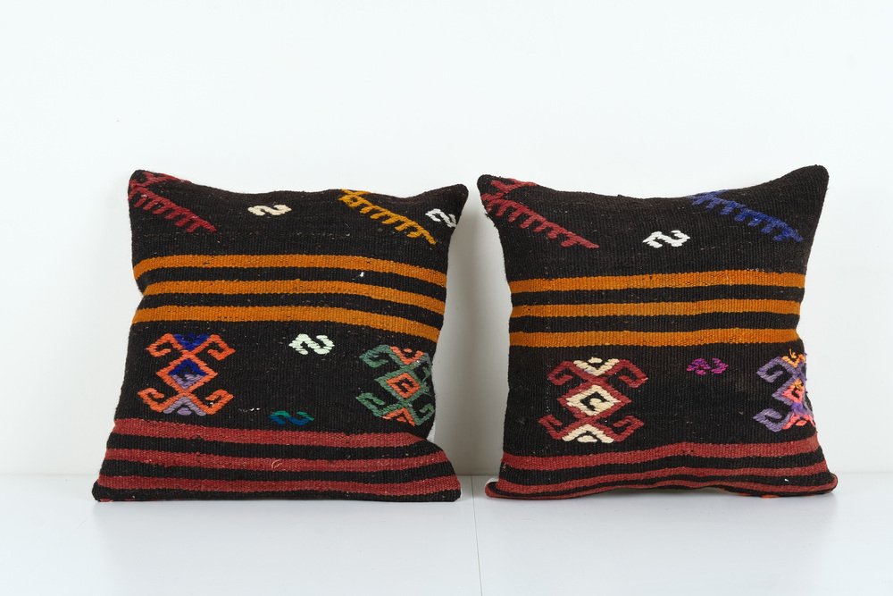 Handmade Organic Striped Kilim Cushion Covers, 2010s, Set of 2