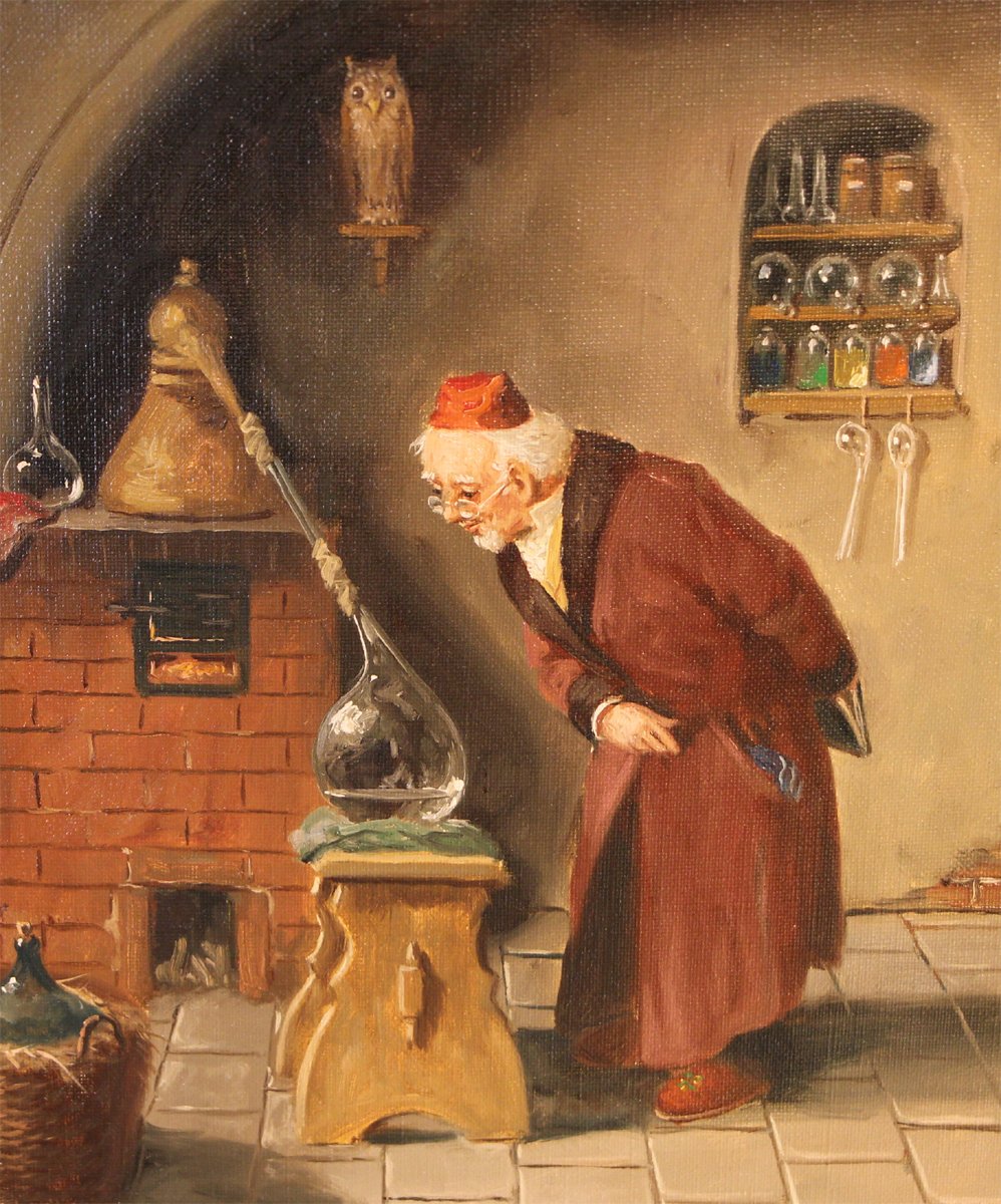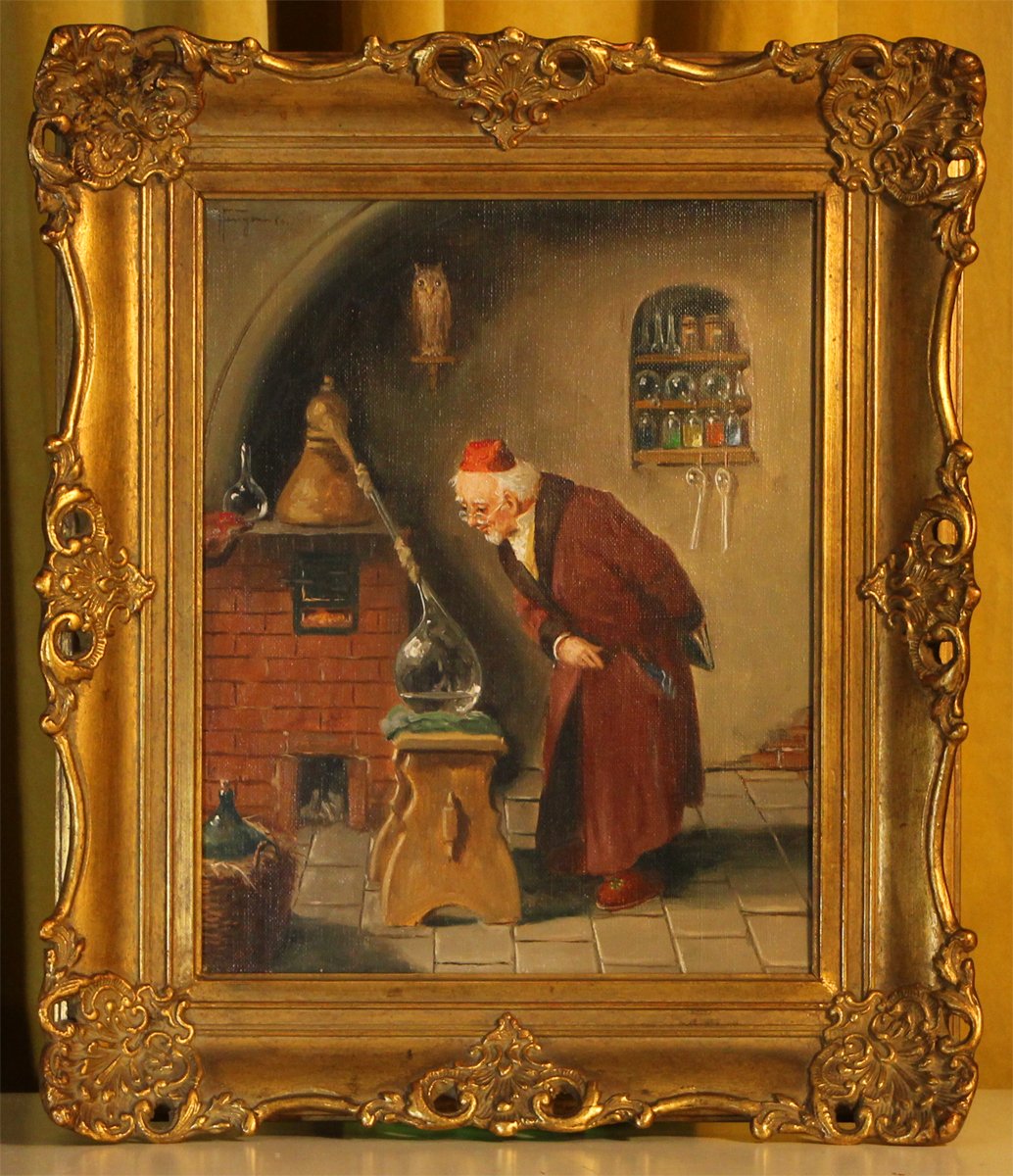 Hans Fenger, Alchemist, Mid-20th Century, Oil on Canvas, Framed