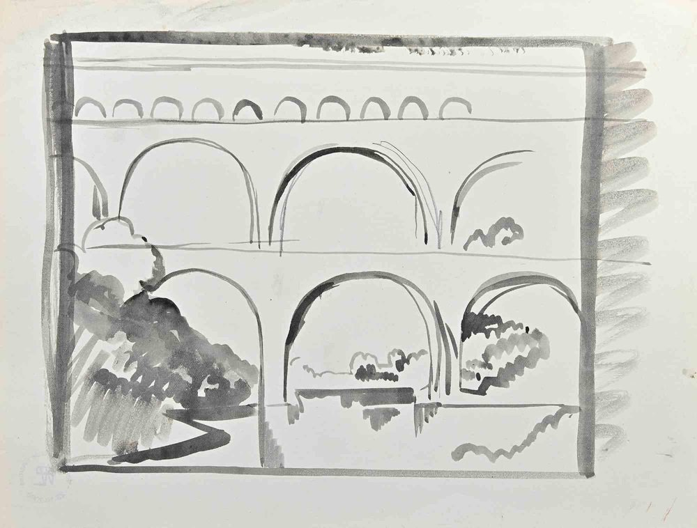 Hermann Paul, The Bridge, Watercolor, Early 20th Century