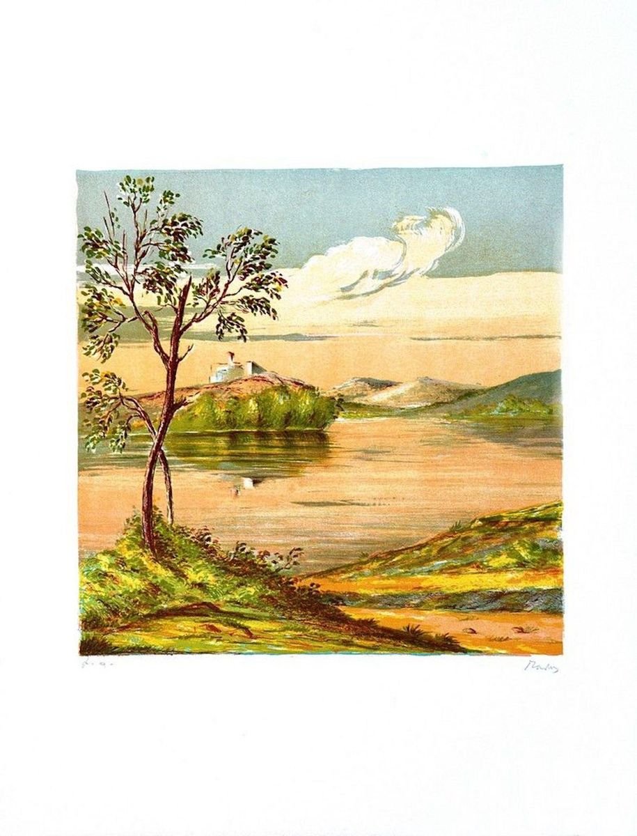 House on the Lake - Original Lithograph by Mario Sportelli - 1970 ca. 1970
