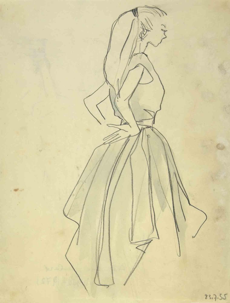 Hubert Yencesse, The Girlish, Pencil Drawing, 1955