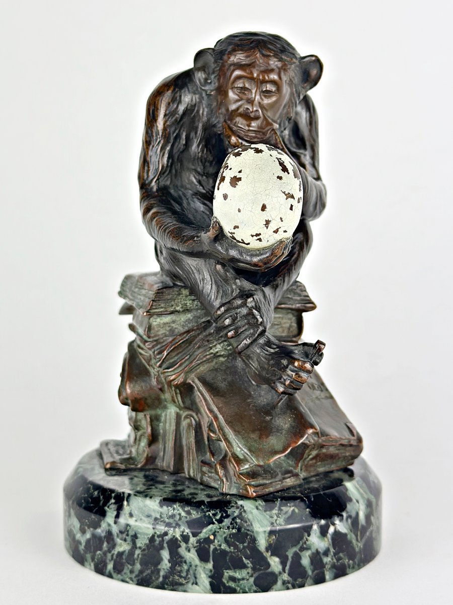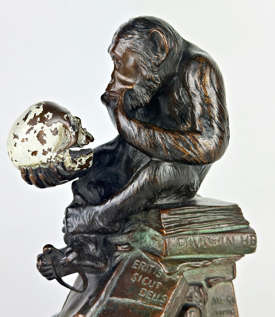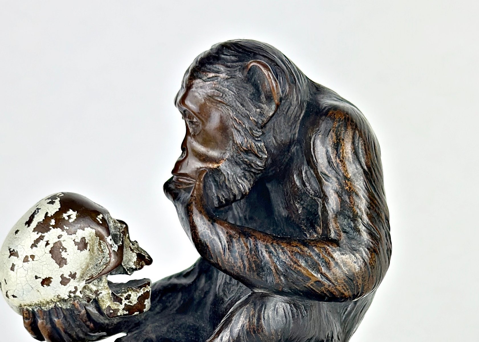 Hugo Wolfgang Reinhold, Ape with Skull, Bronze, Signed, Foundry Mark, Casting Before 1900